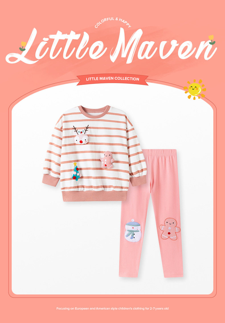 Usine vente en gros vêtements enfants, nouvel ensemble fille Noël automne, tenue enfant mignonne rayée