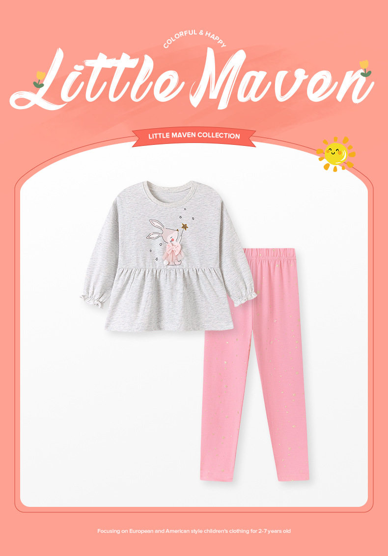 Ensemble de deux pièces dessin animé filles, nouveauté automne, sweat à capuche maille bébé et legging empilé
