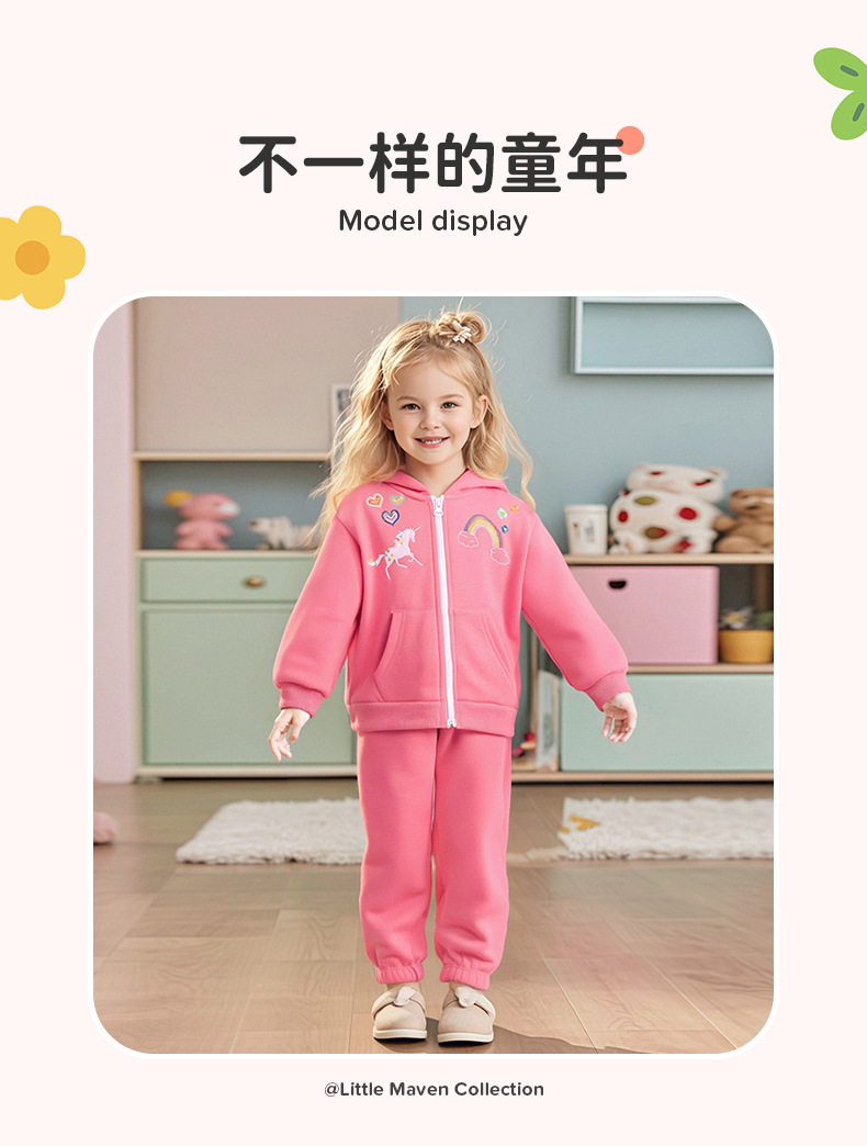 Vente en gros vêtements enfants style, nouvel ensemble fille manche longue automne, tenue enfant mignonne doublée polaire et épaisse