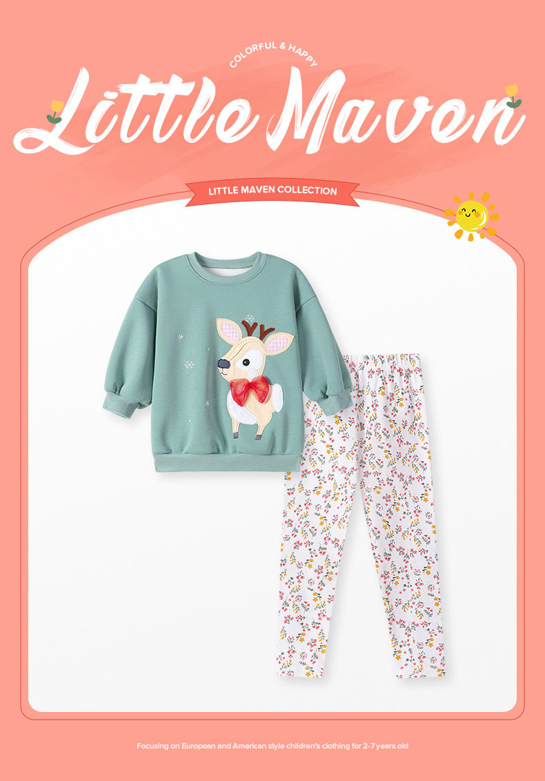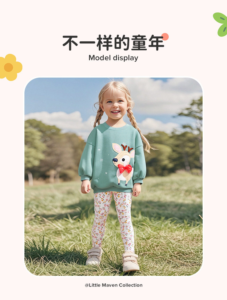 Ensemble de deux pièces dessin animé filles, nouveauté automne, sweat à capuche maille bébé et legging empilé Ensemble de deux pièces dessin animé filles, nouveauté automne, sweat à capuche maille bébé et legging empilé