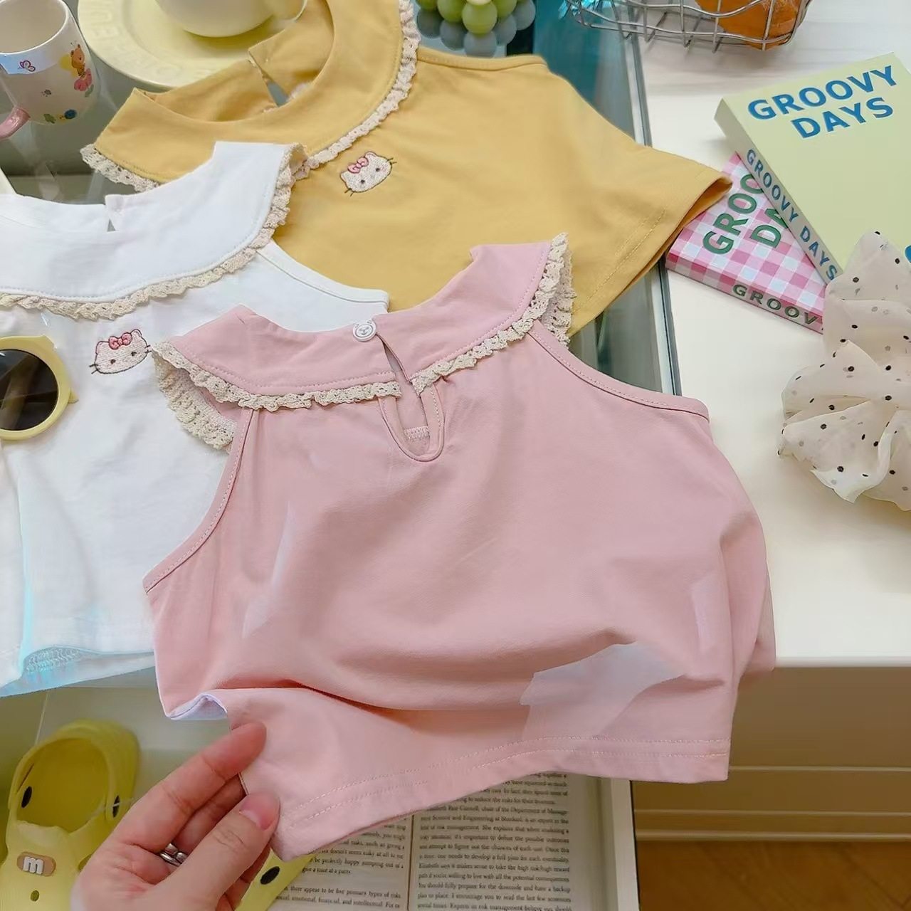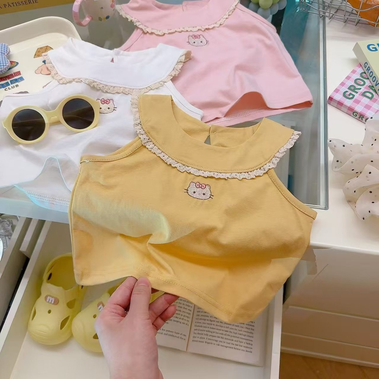 Atasan tanpa lengan super lucu viral serbaguna stylish manis anak perempuan musim panas, tank top bordir 100% katun