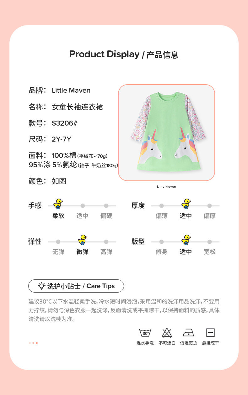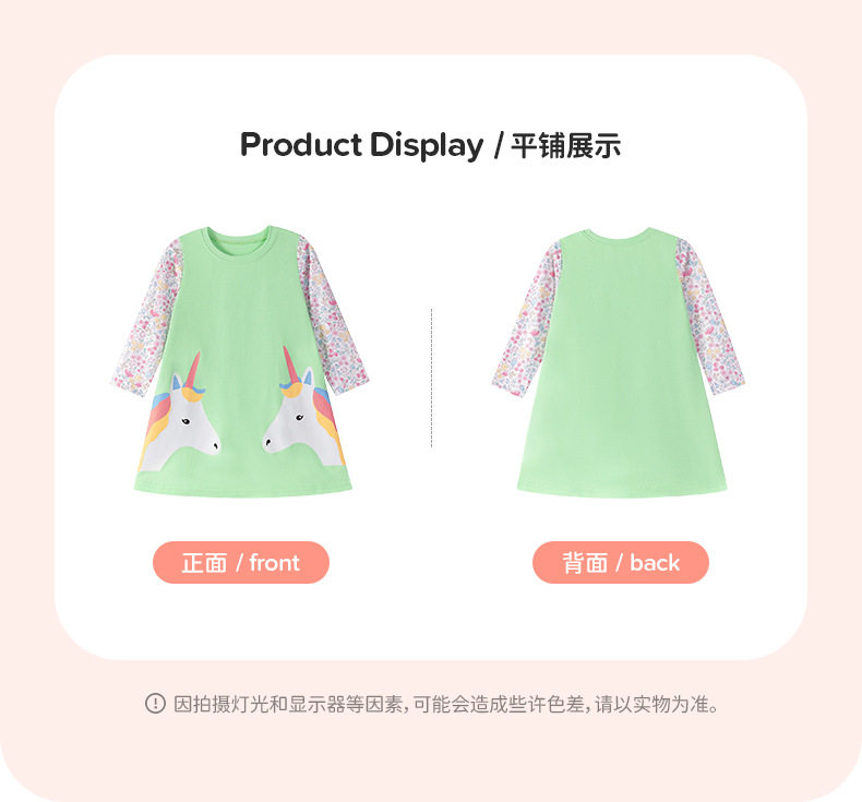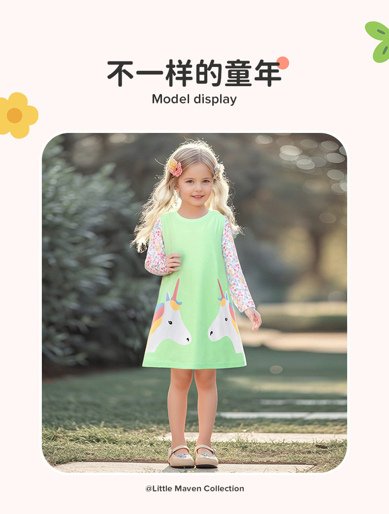 Gaun anak perempuan gaya musim gugur lengan panjang kartun, gaun anak