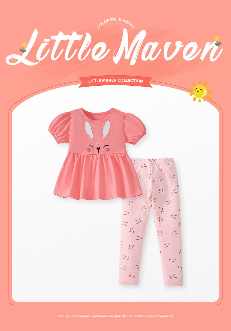 Pakaian Anak Baru Tahun, Set Anak Perempuan Katun, Set Anak Kelinci Kartun