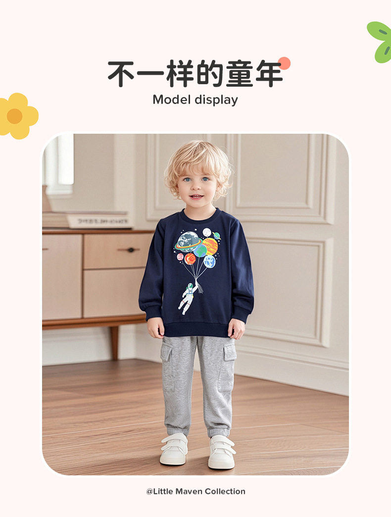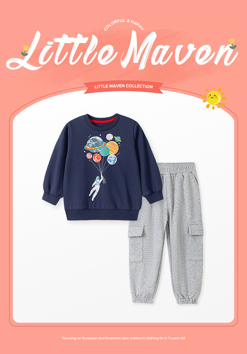 Pakaian Anak, Hoodie Anak Laki-laki Musim Gugur, Grosir Set Anak Motif Luar Angkasa Katun