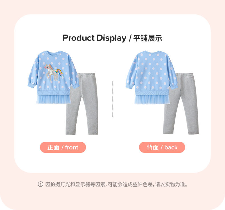 Set dua bagian kartun anak perempuan baru musim gugur, hoodie patchwork mesh bayi dan legging tumpuk