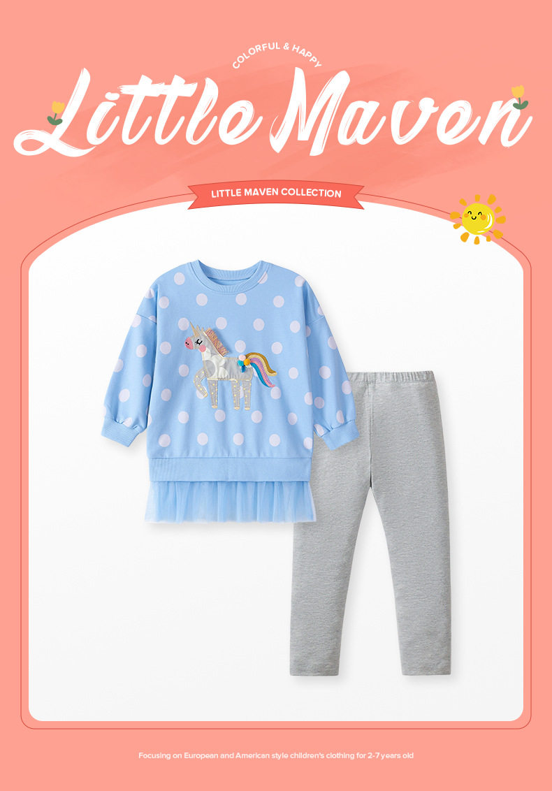 Set Anak Bergaya, Set Anak Kartun Musim Gugur, Set Anak Perempuan Lucu