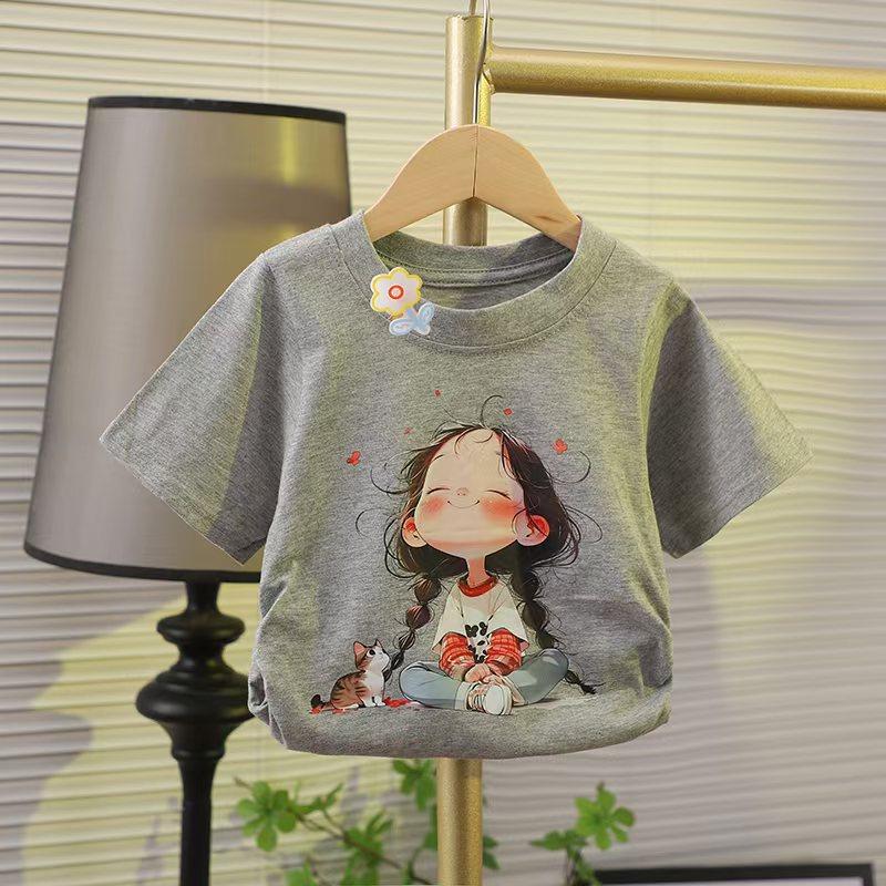 Grosir pakaian anak pabrik, kaos lengan pendek anak perempuan musim panas, atasan bayi gaya, kaos kartun lucu anak