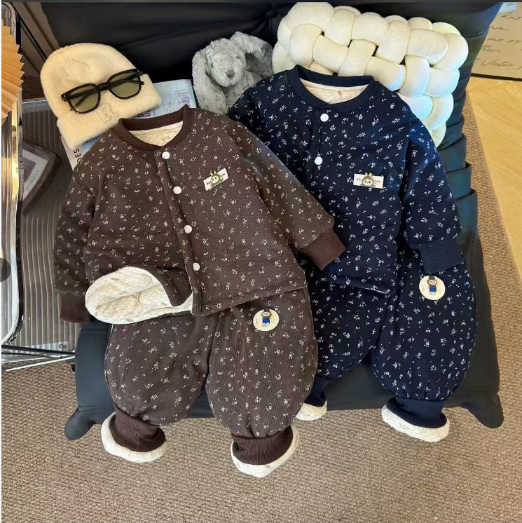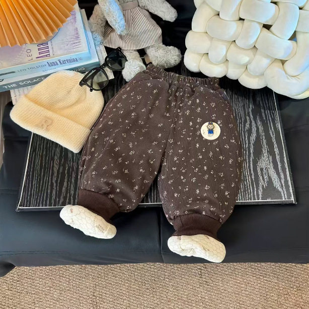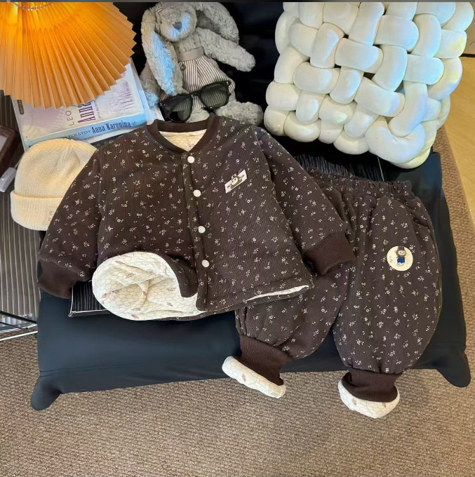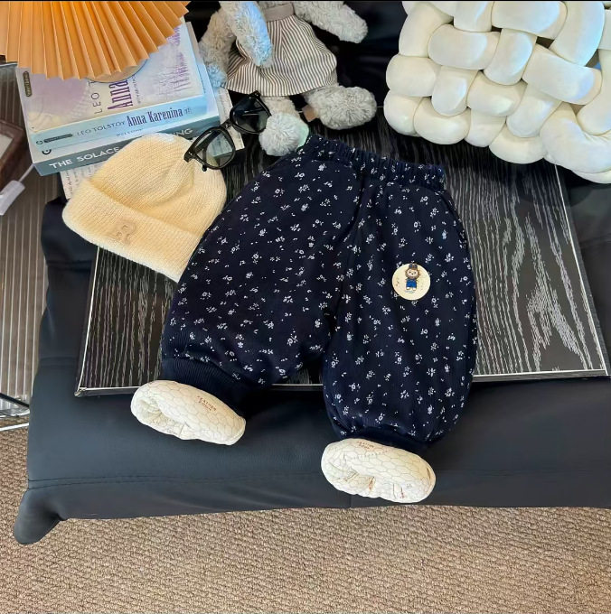 New Girls' Winter Floral Print Padded Jacket & Pants Set, Thickened Cotton Coat & Trousers, Temperature-Changing Padded Outfit