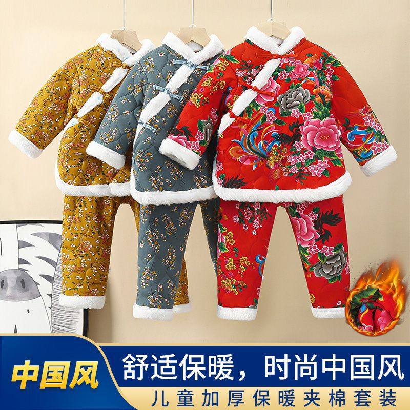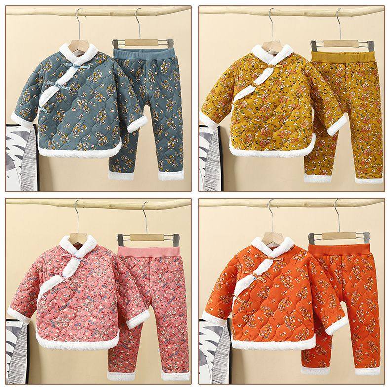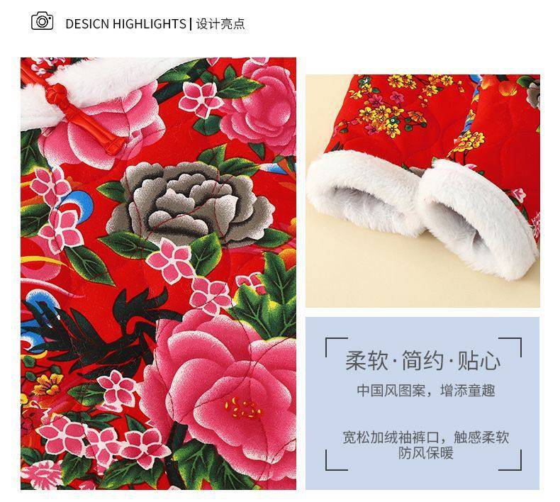 Girls' Winter Cotton Jacket, Viral Floral Print Padded Set, Baby Spring Festival Outfit, Thickened Northeast Style Floral Cotton Coat Set