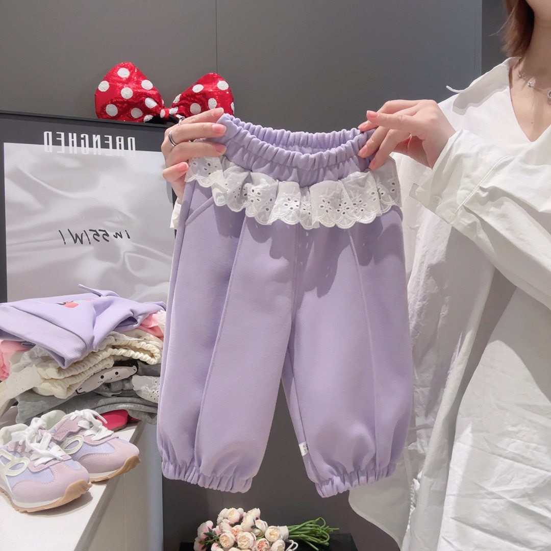 Stylisches Patchwork-Retro-Hose, Mädchen-Herbst-Casual-Sportshose, Baby-Kinder-Spitzenrüschen-Überwurf-Außenhose