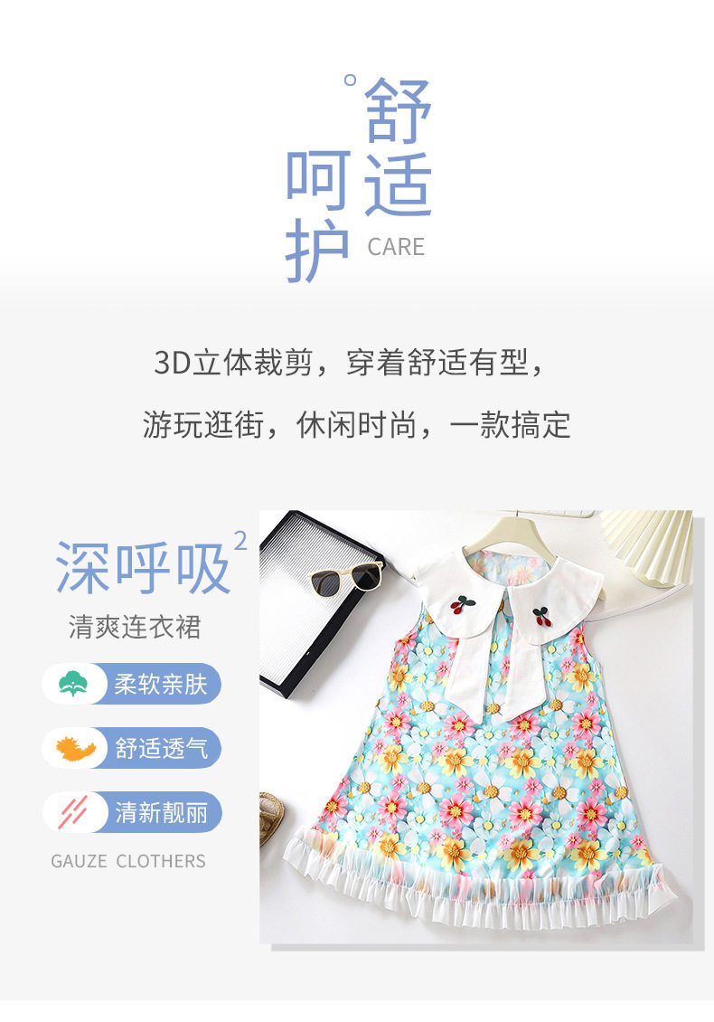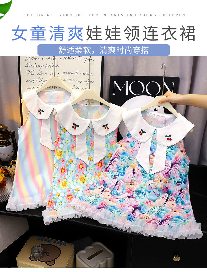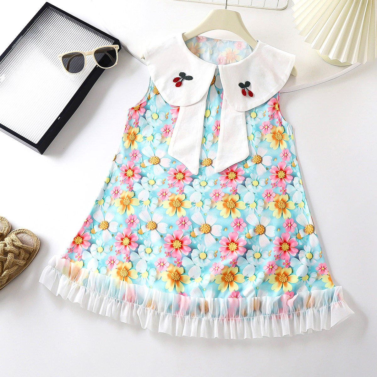 فستان بنات جديد للصيف، فستان بدون أذرع 3D مطبوع على شكل حرف A للأطفال الصغار والوسطى والكبار