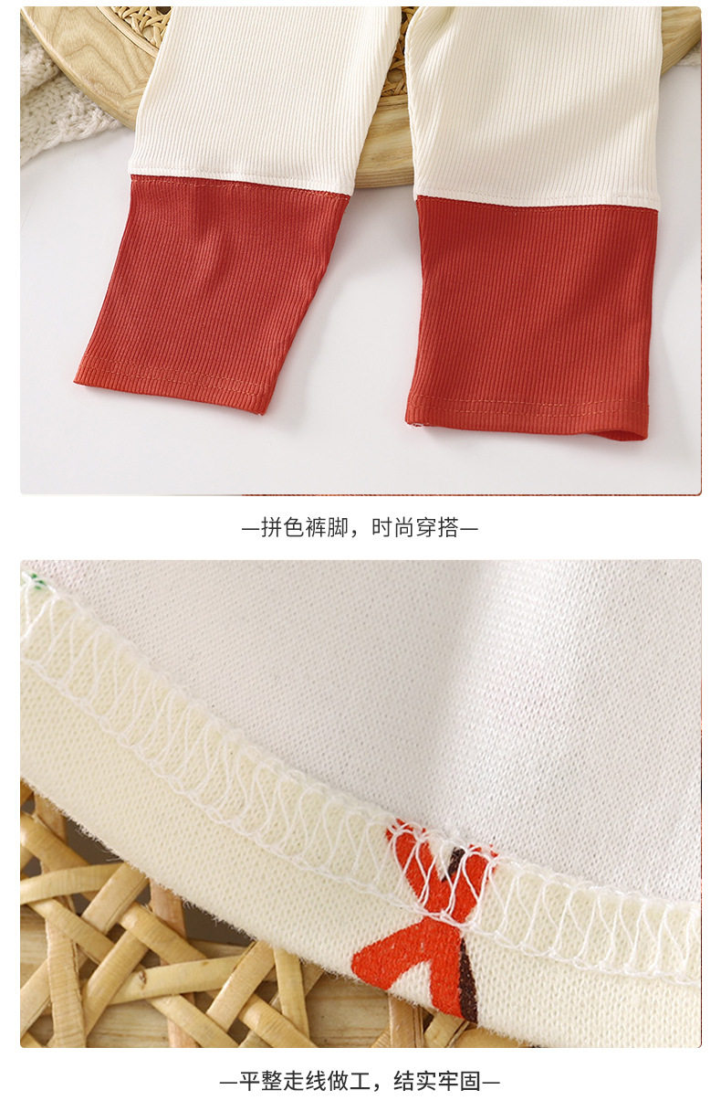 Girls' Hoodie Set, New Autumn Collection, Toddler Fall Mushroom & Bunny Print, Red Stylish Plaid Patchwork Color-Block Outfit