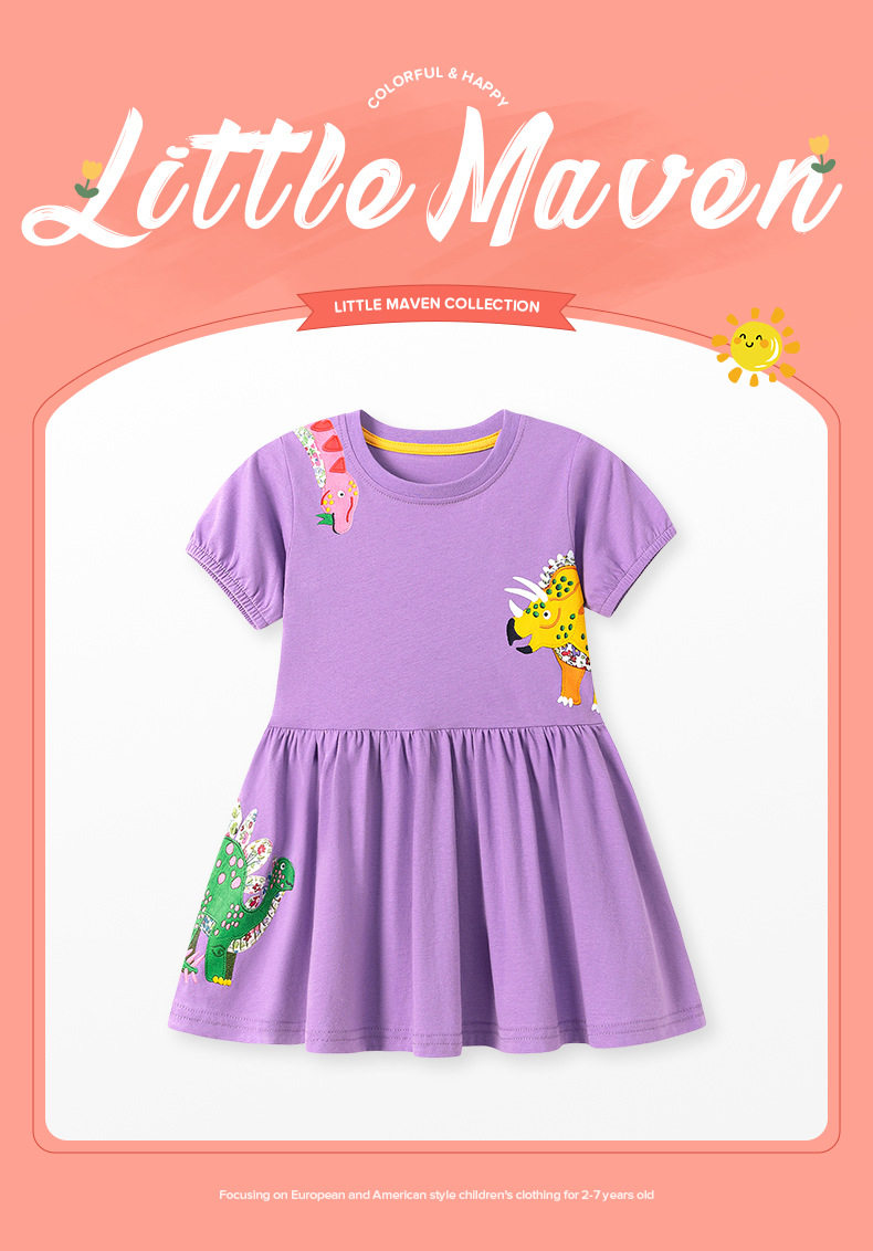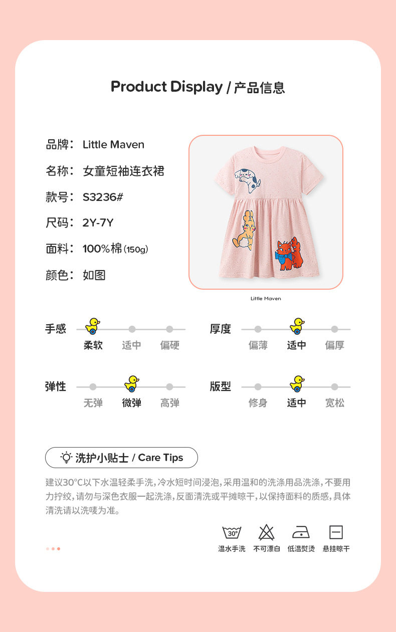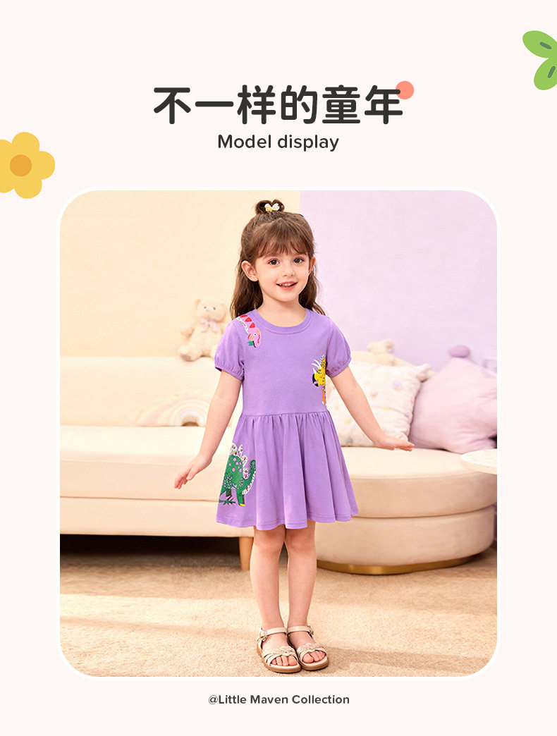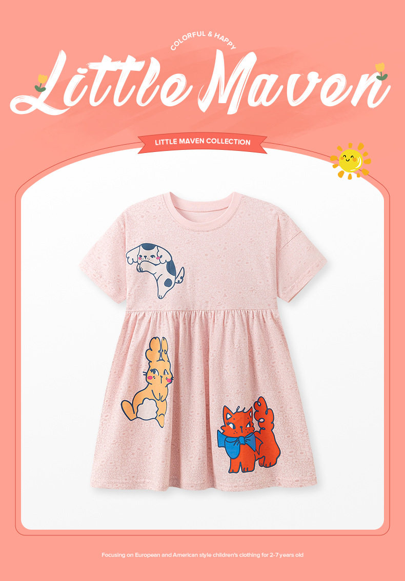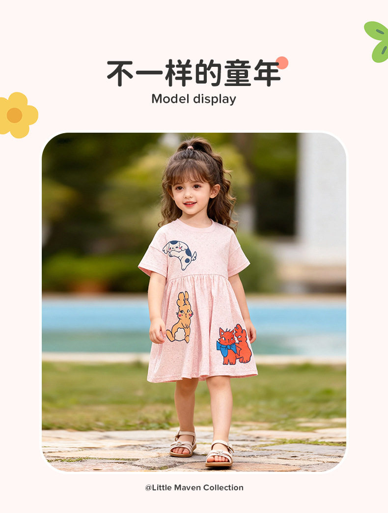New Summer Girls' Short-Sleeve Dress, Cartoon Kids' Dress, Baby Dress