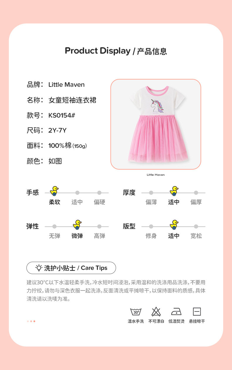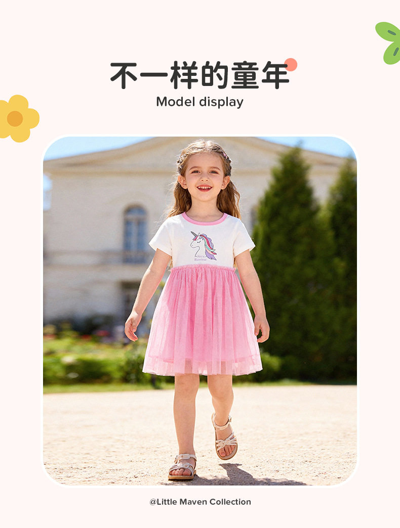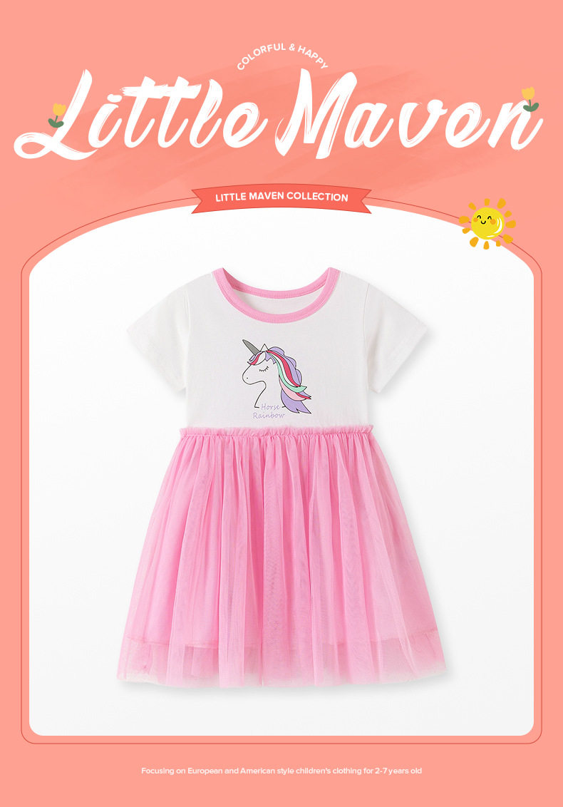 New Summer Girls' Dress, Cute Unicorn Kids' Dress, Short-Sleeve Dress Wholesale