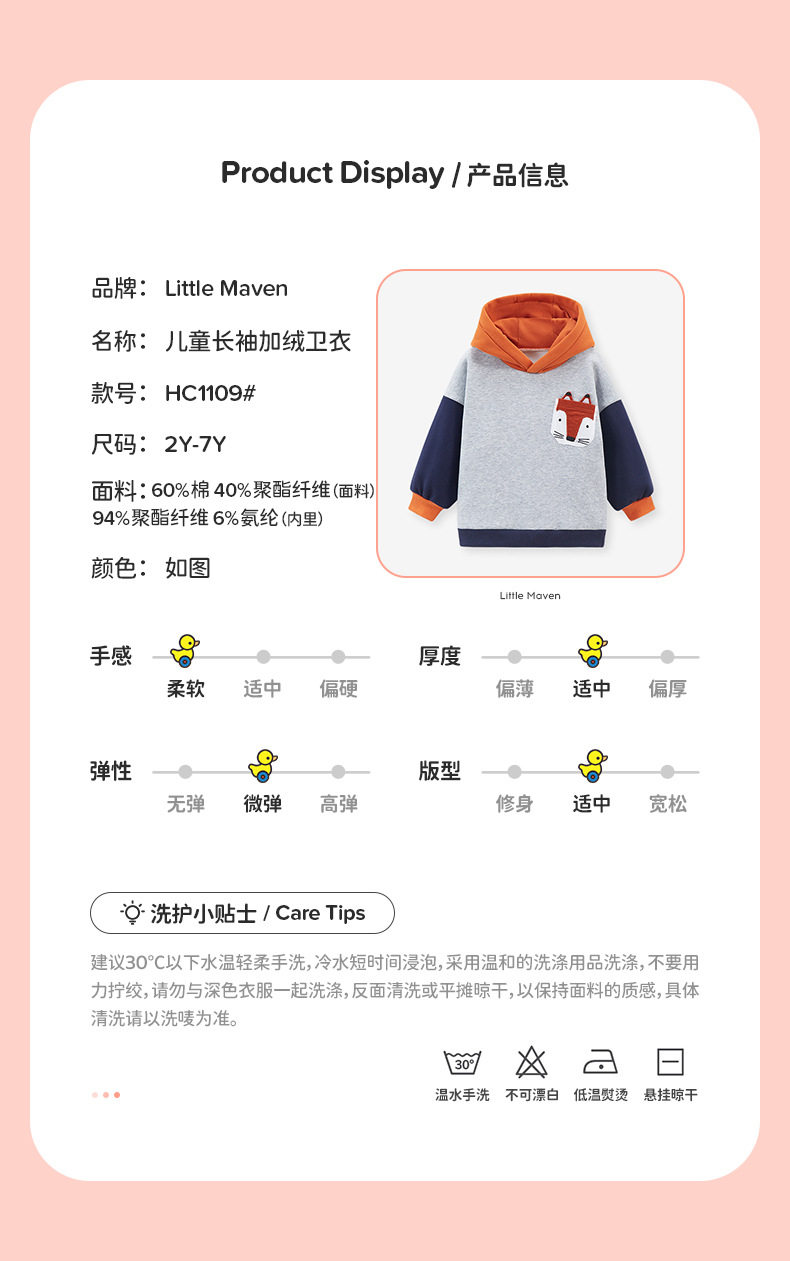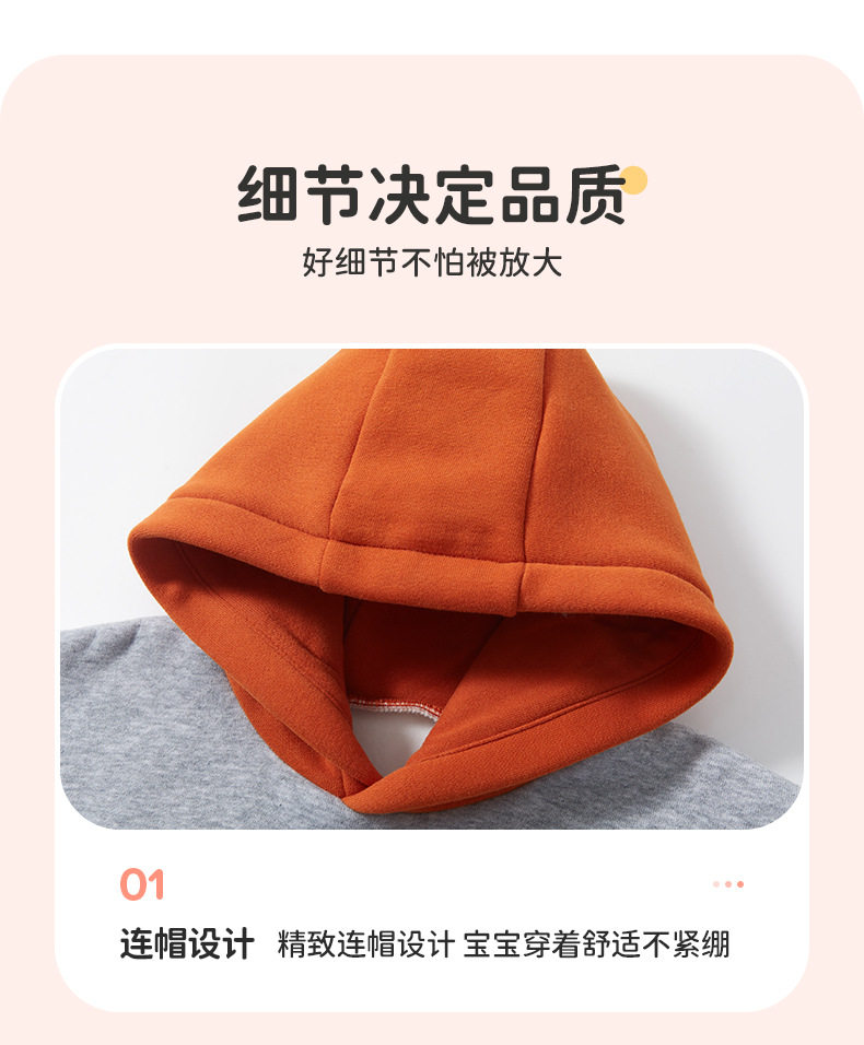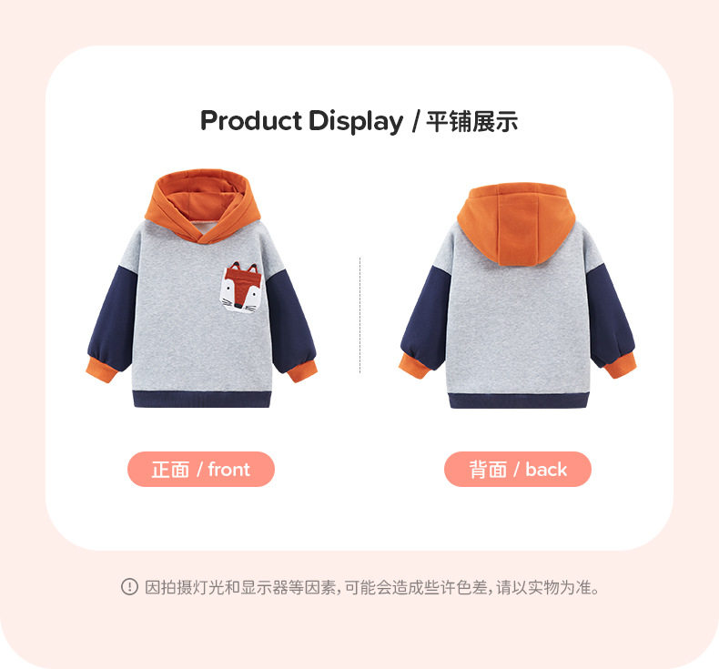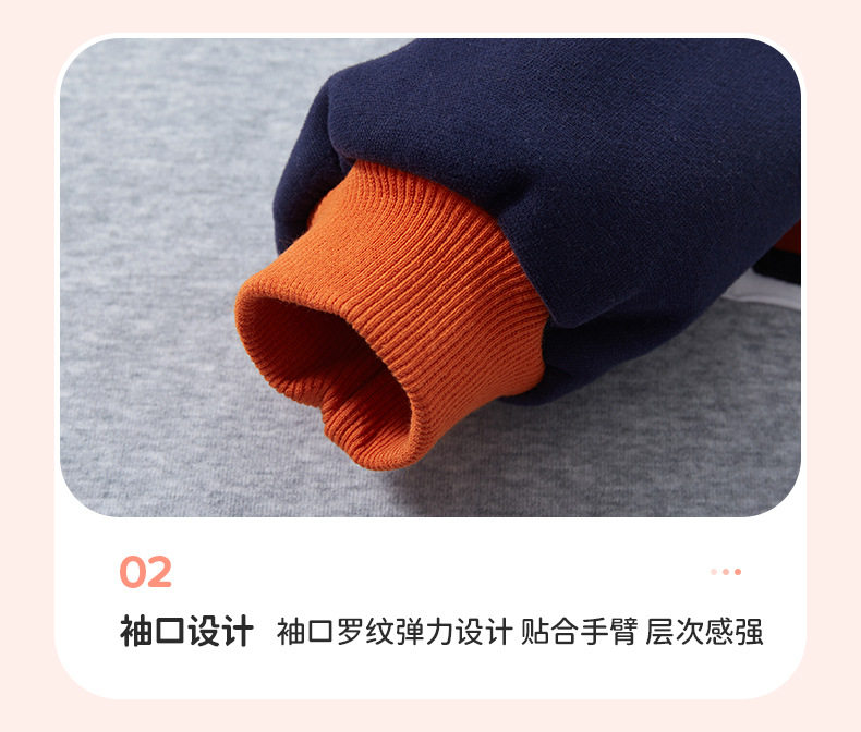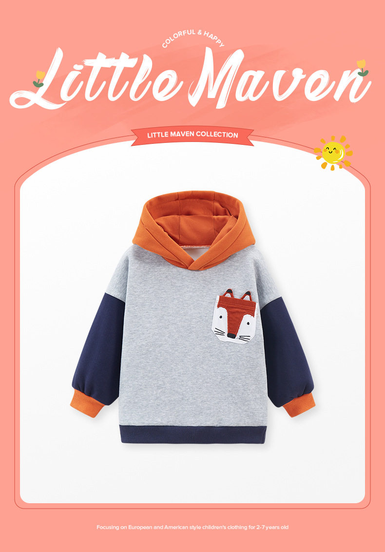 Kids' New Autumn & Winter Fleece-Lined Long-Sleeve Hoodie, Cartoon Color-Block Pullover