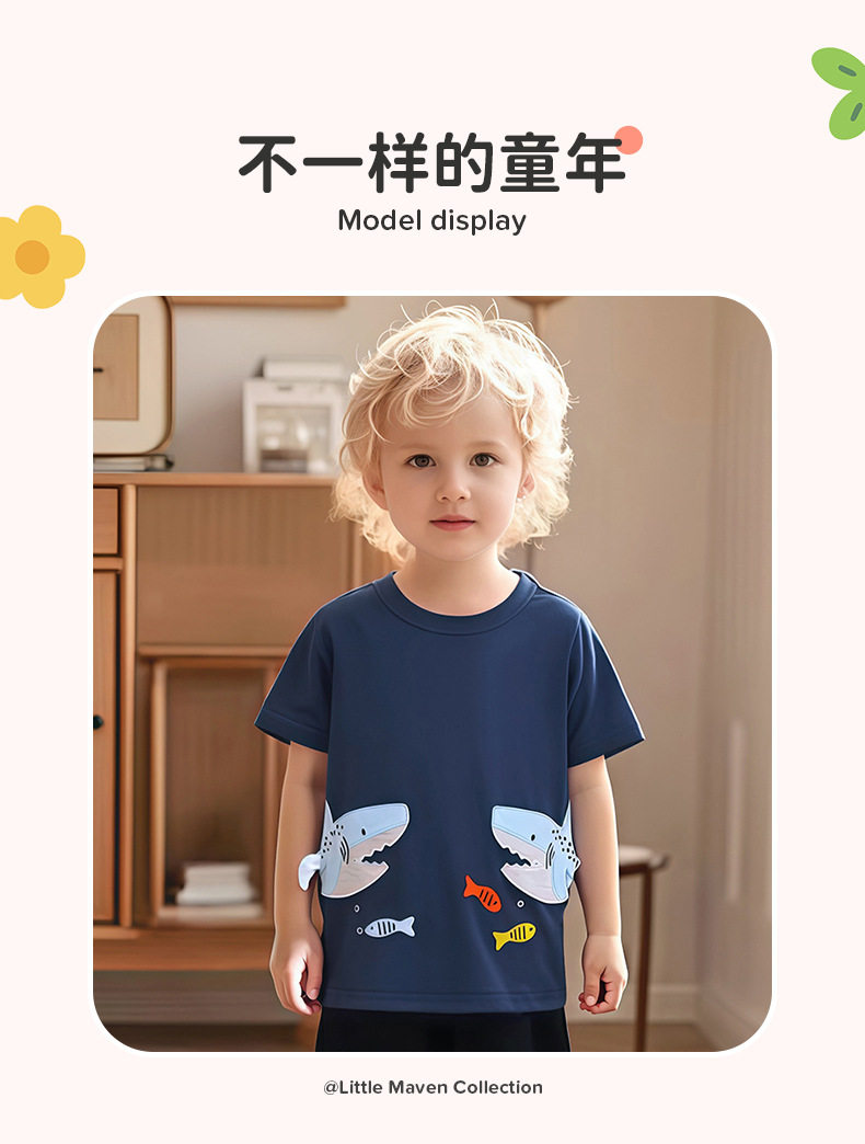 Boys' Summer Cartoon Top, New Short-Sleeve Kids' T-Shirt, Baby Tee