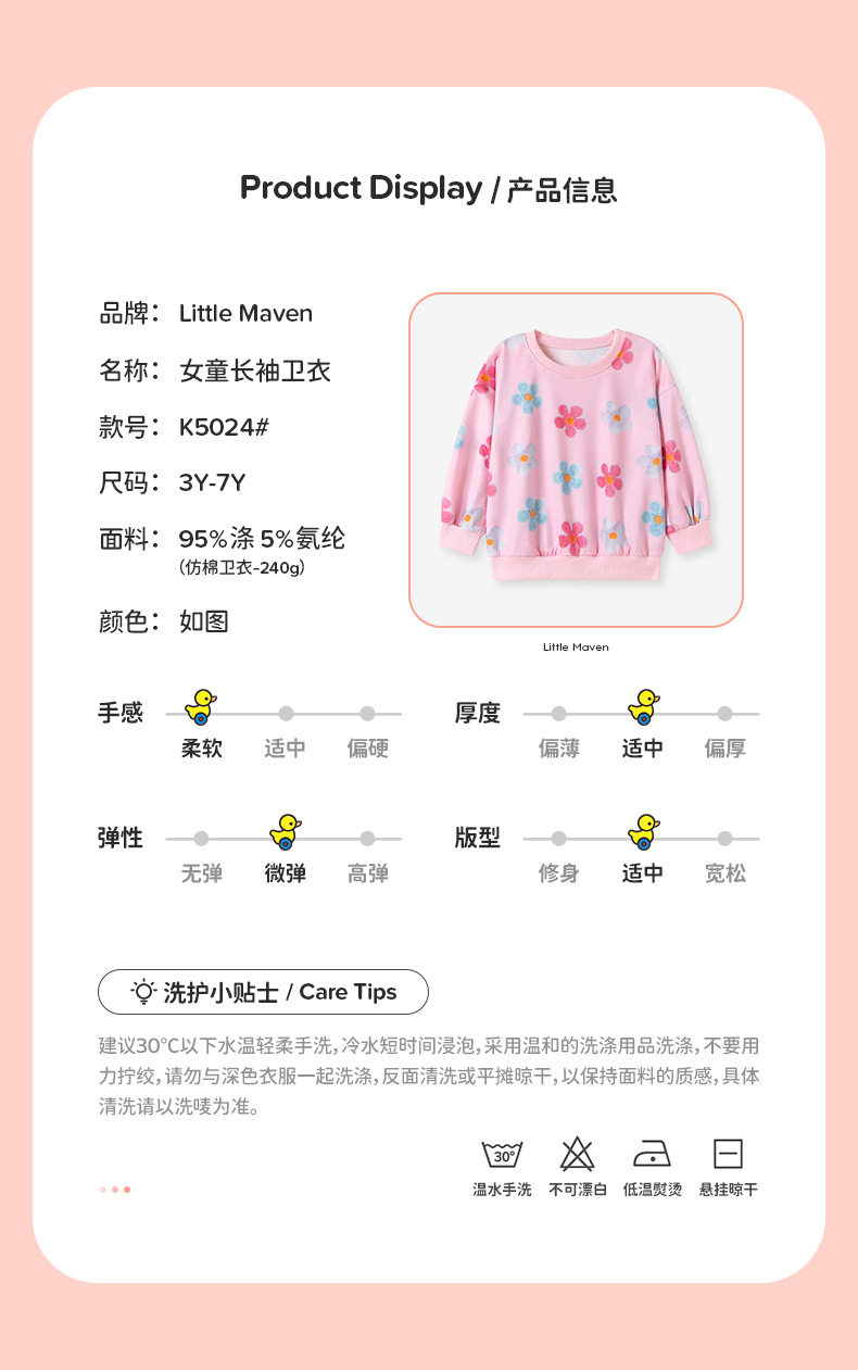 Girls' Hoodie Wholesale from Factory, Autumn Baby Top, Cute Kids' Fall Wear