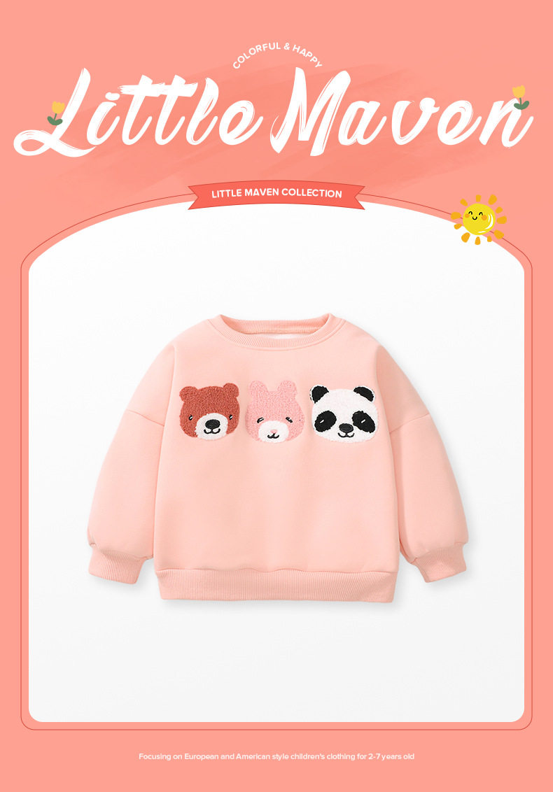 Girls' Winter Fleece-Lined Hoodie Set, Autumn Kids' Cute Pants Outfit