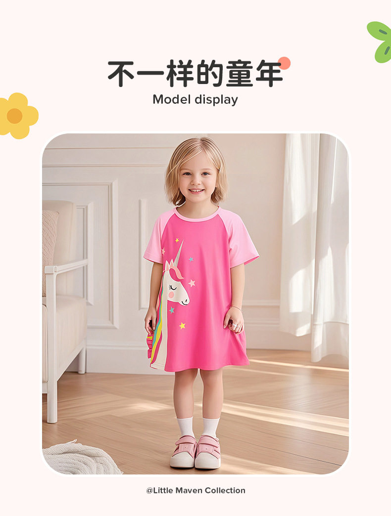 Girls' Cute Short-Sleeve Cotton Dress Wholesale, Summer Kids' Dress