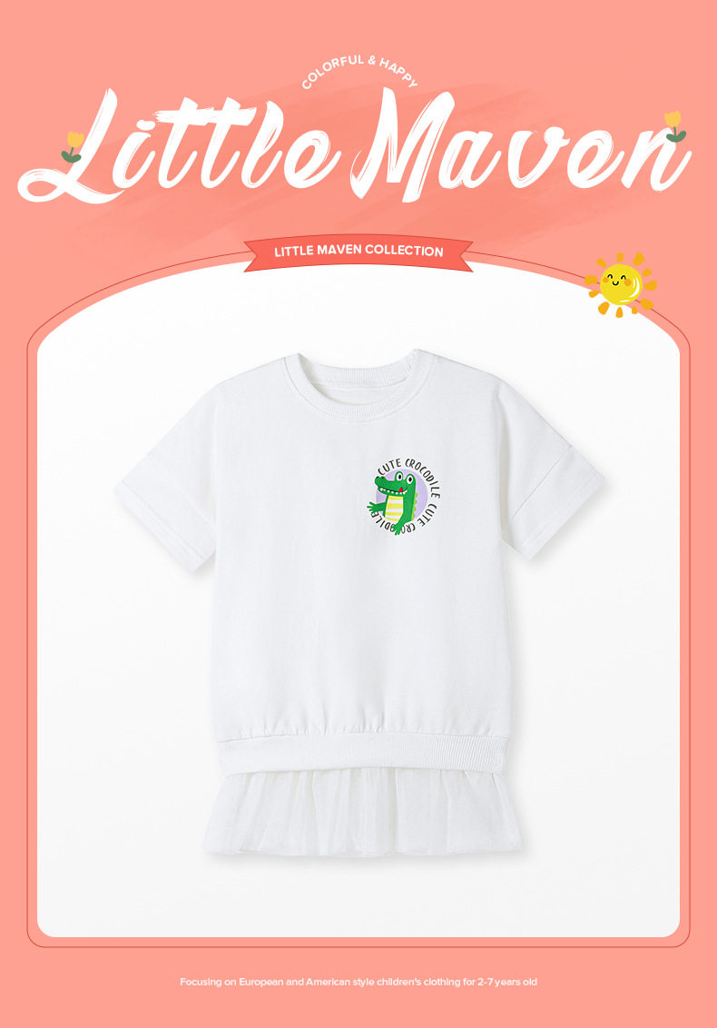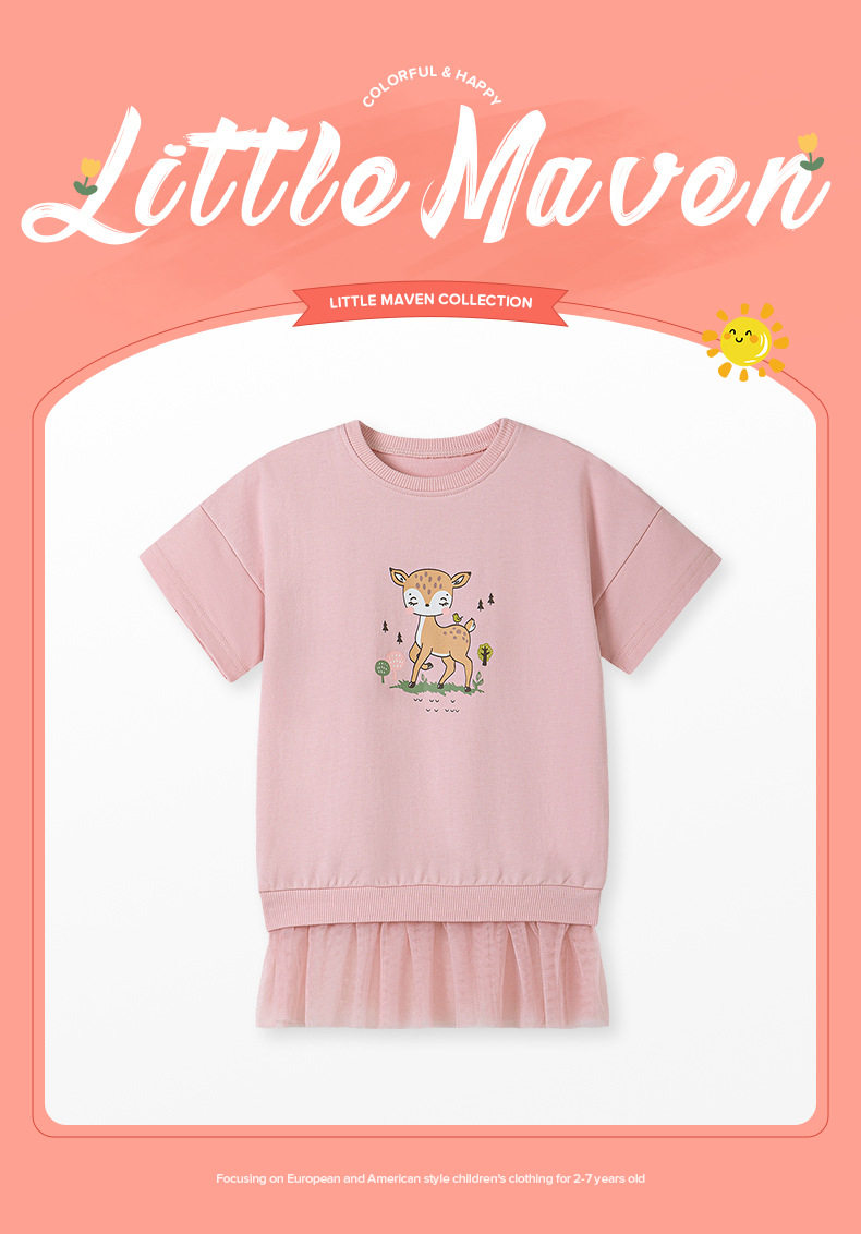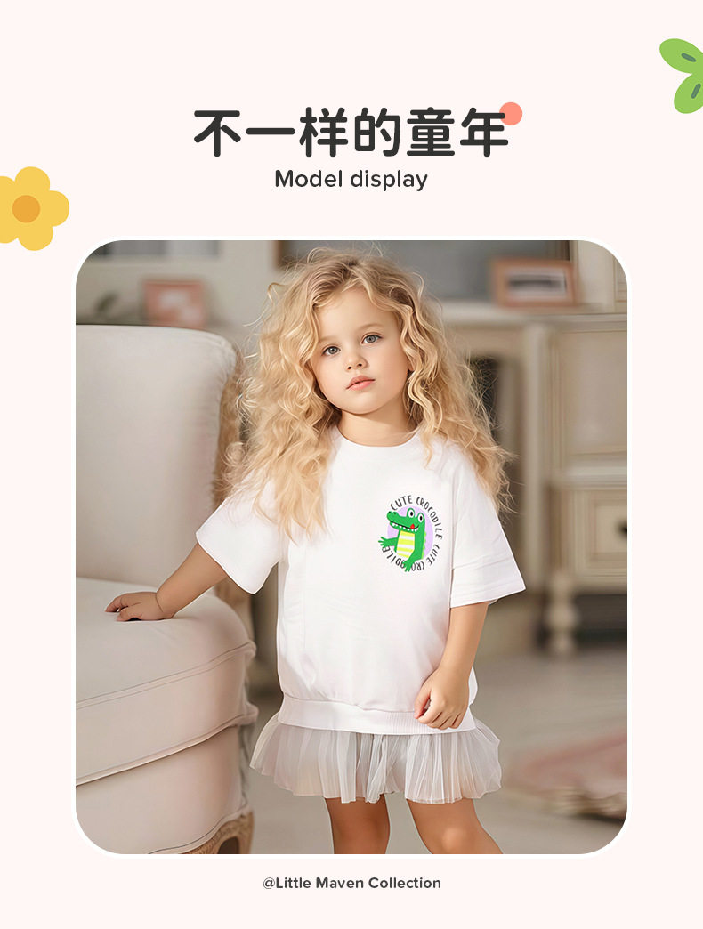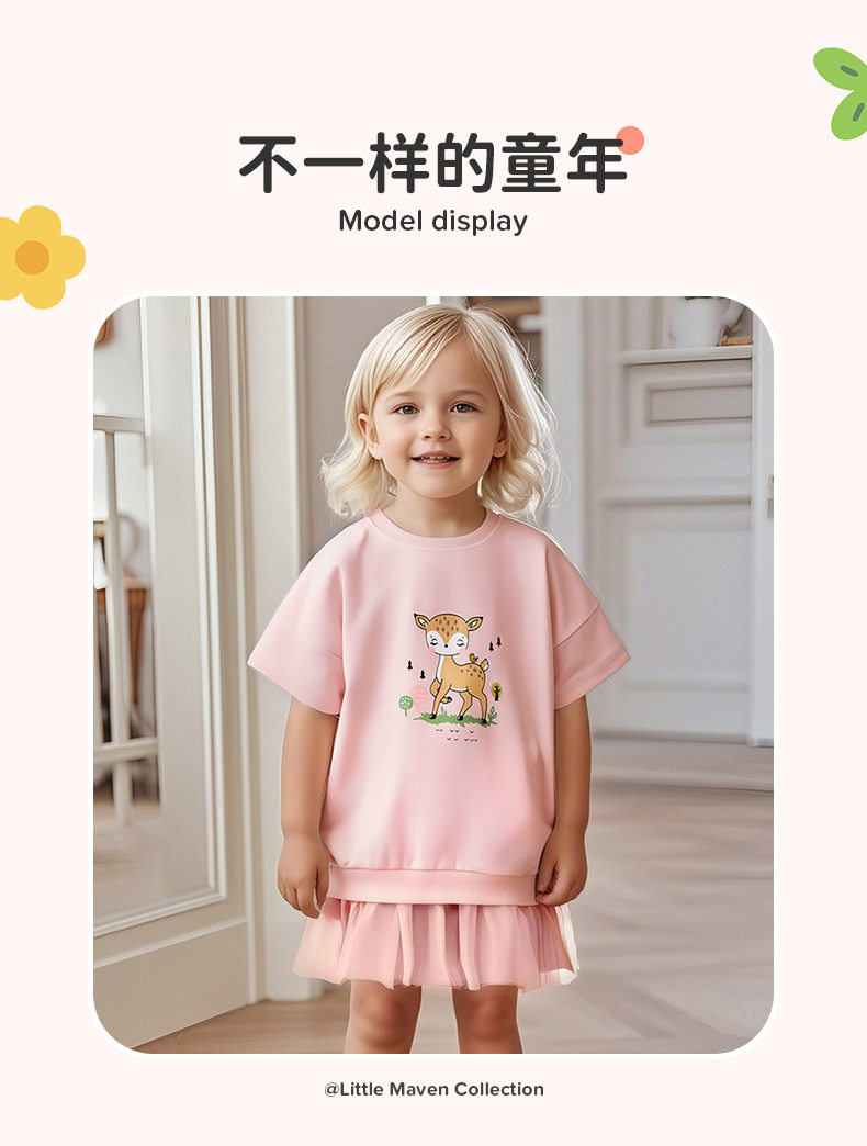 Girls' Summer Short-Sleeve T-Shirt Wholesale from Factory, Style Baby Top, Cartoon Cute Kids' Tee