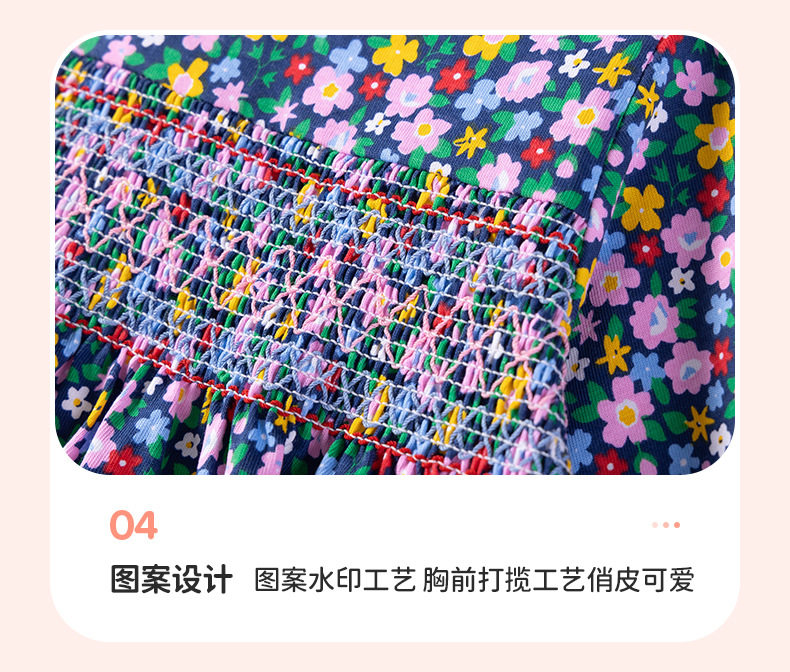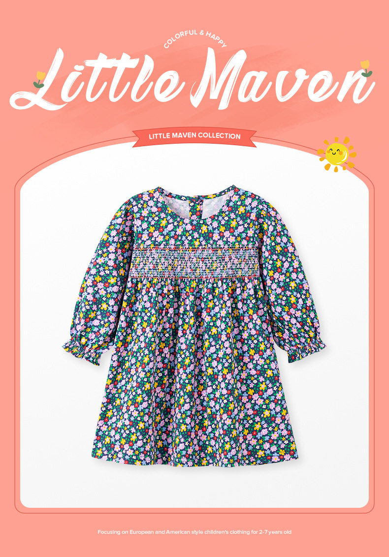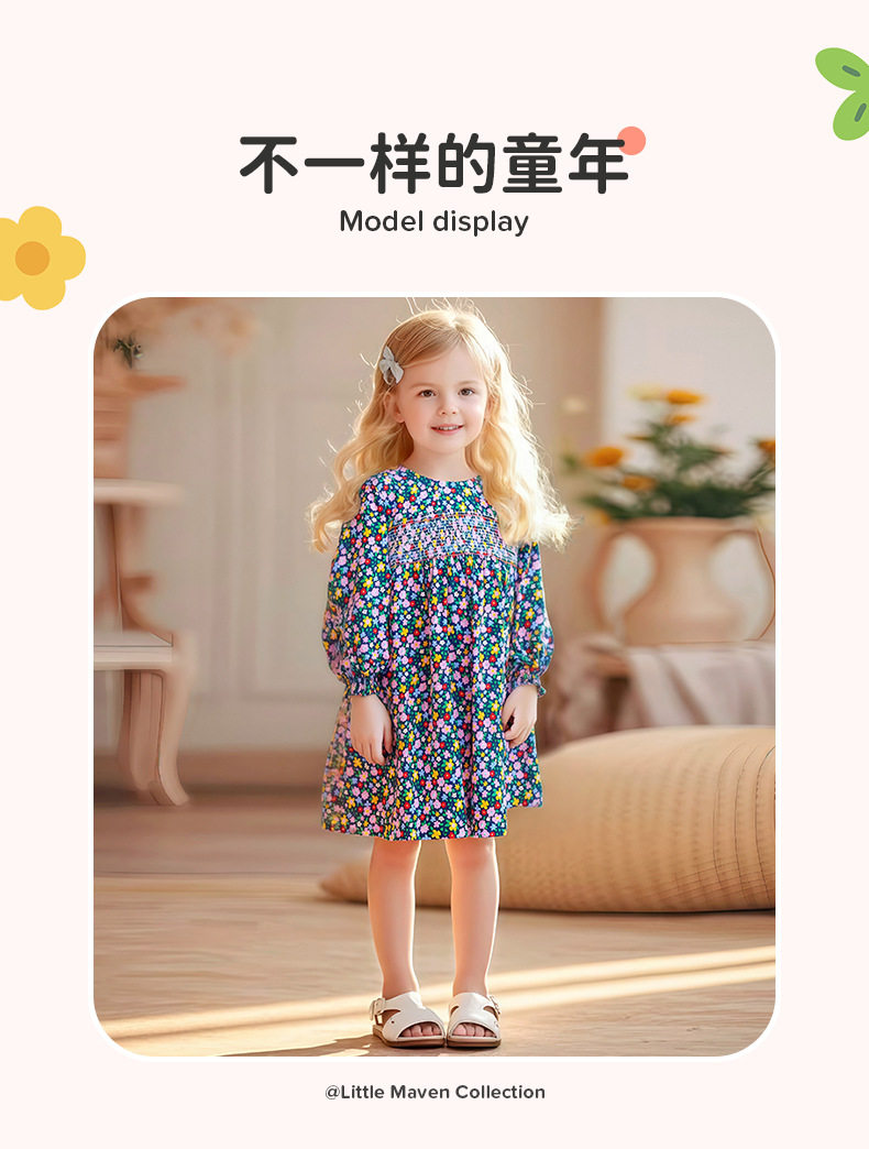 Girls' New Autumn Long-Sleeve Dress Wholesale, Watermark Floral Kids' Dress