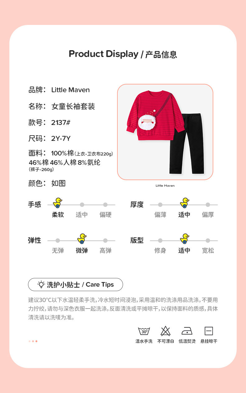 Christmas Style Girls' Hoodie, Autumn Long-Sleeve Top, Baby Cute Cotton Sweatshirt