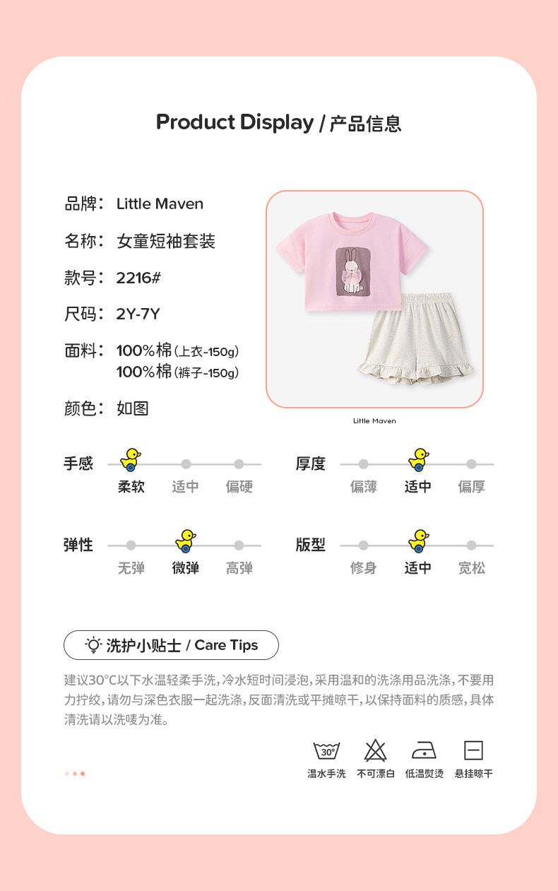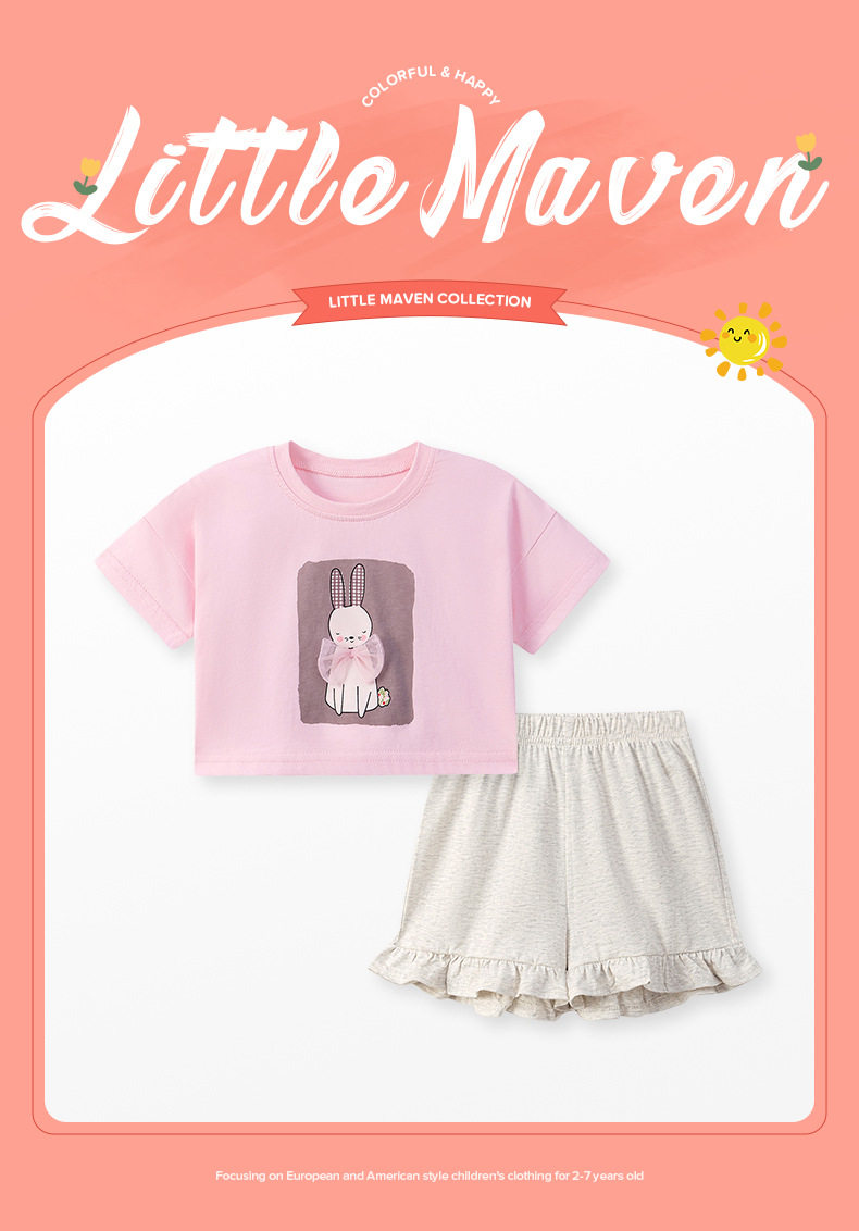 Girls' Summer Set, Cute Cartoon Baby Two-Piece Outfit