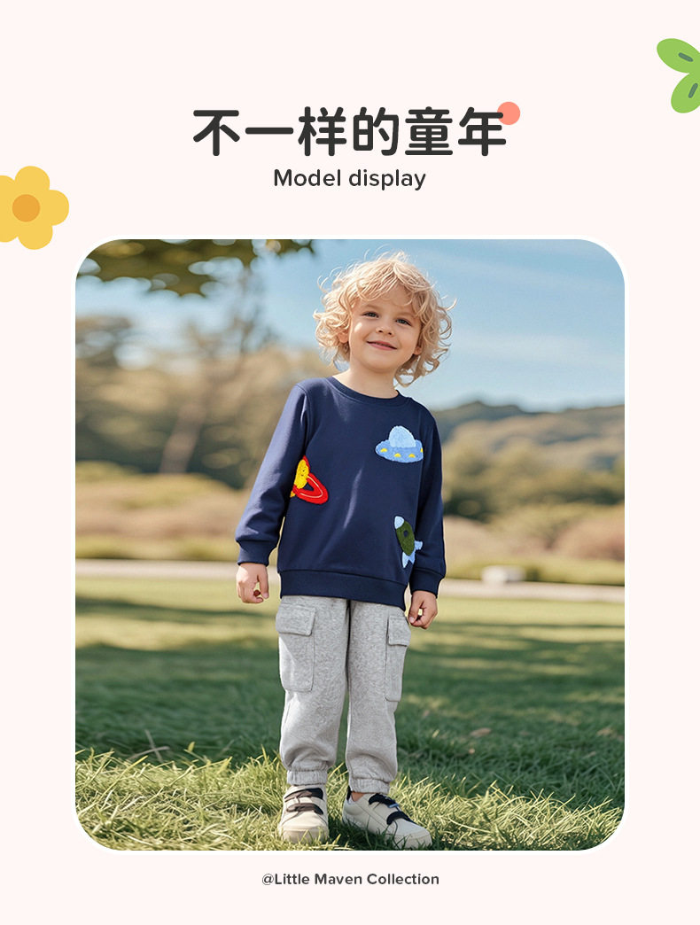 Boys' Autumn Cartoon Hoodie, Space Pattern Kids' Wear