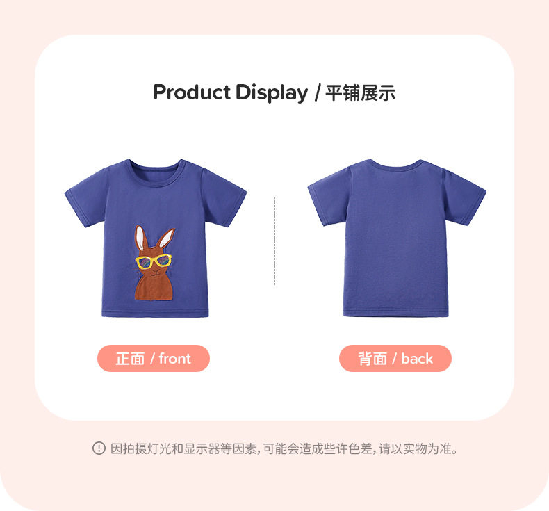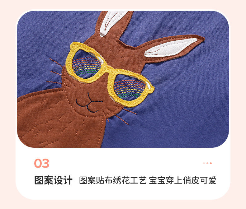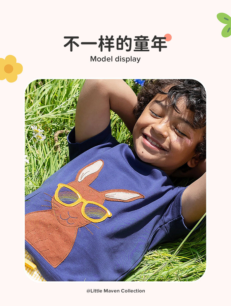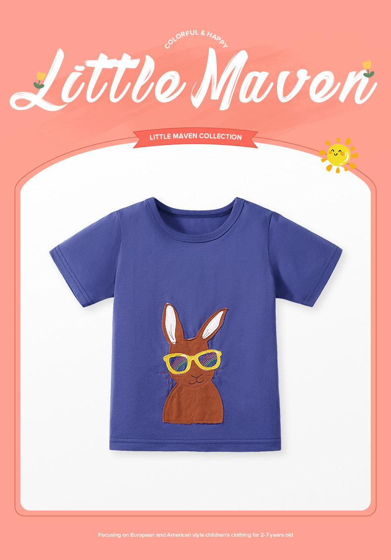 Kids' Summer Rabbit Print T-Shirt, Boys' Cotton Applique Top