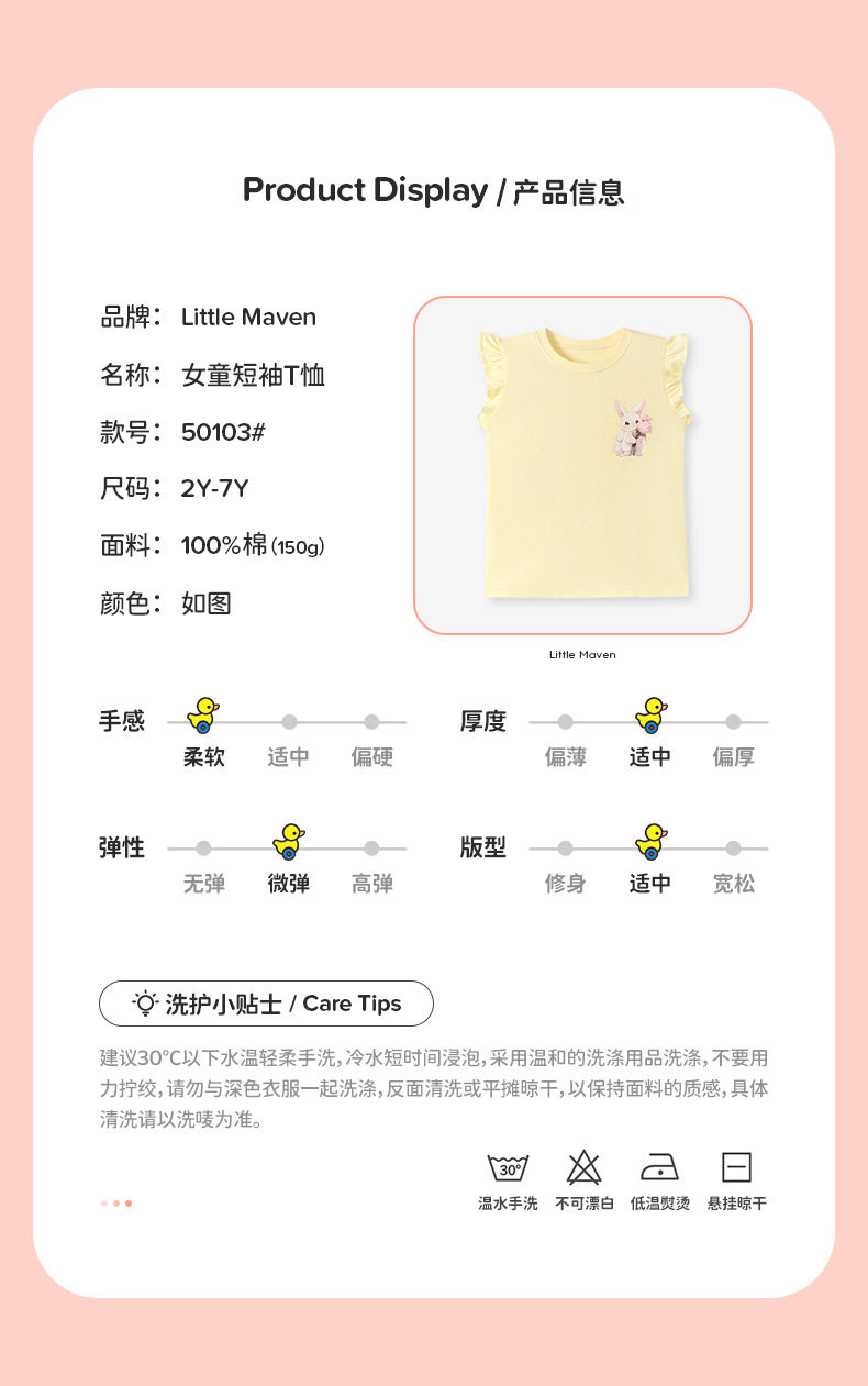 Girls' Summer Short-Sleeve T-Shirt Wholesale from Factory, Style Baby Top, Cartoon Cute Kids' Tee