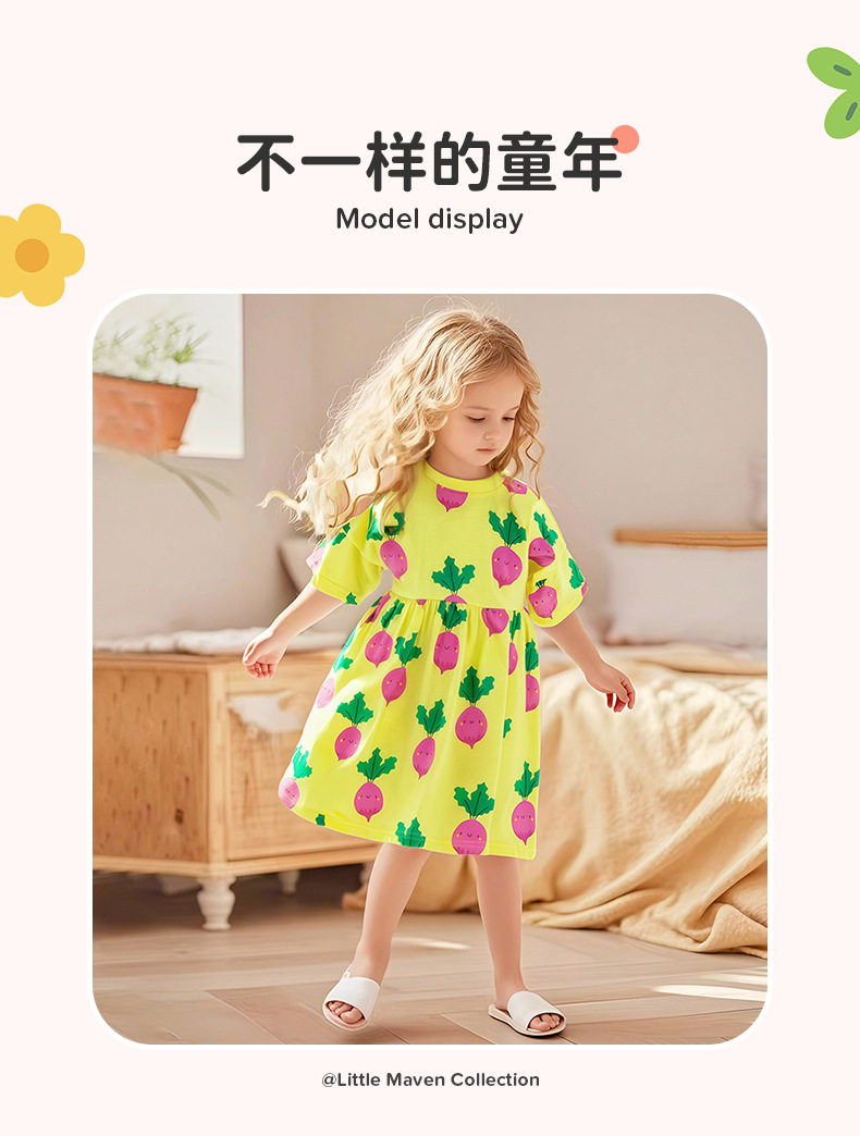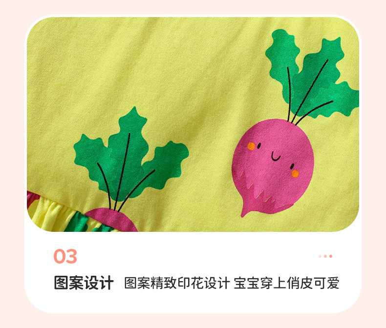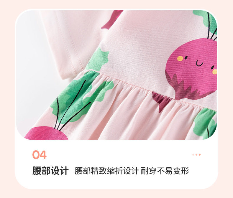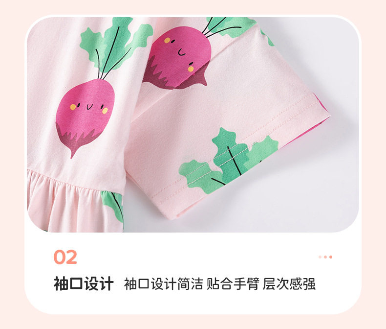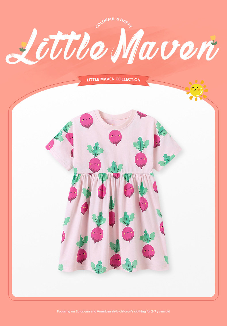 Girls' Summer Cotton Short-Sleeve Dress, Cute Radish Print Kids' Dress