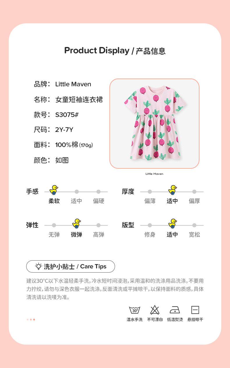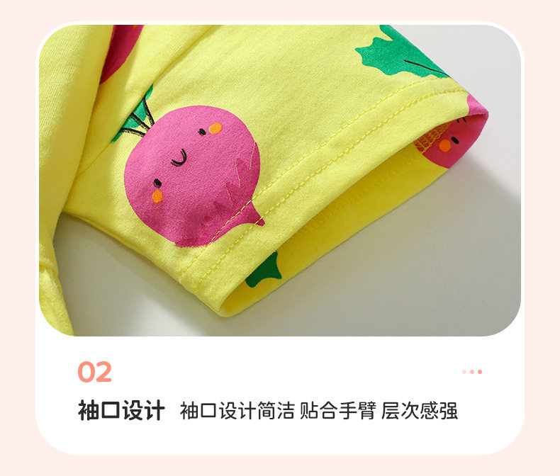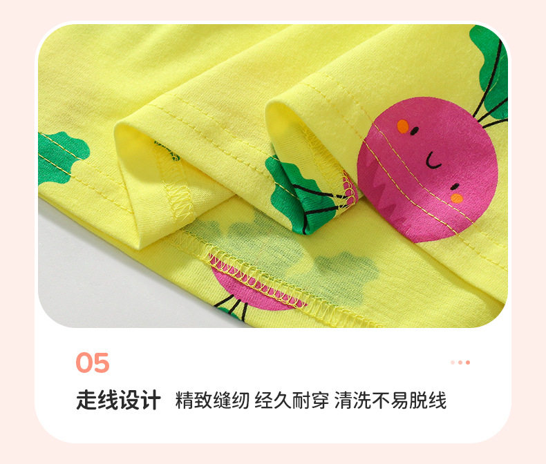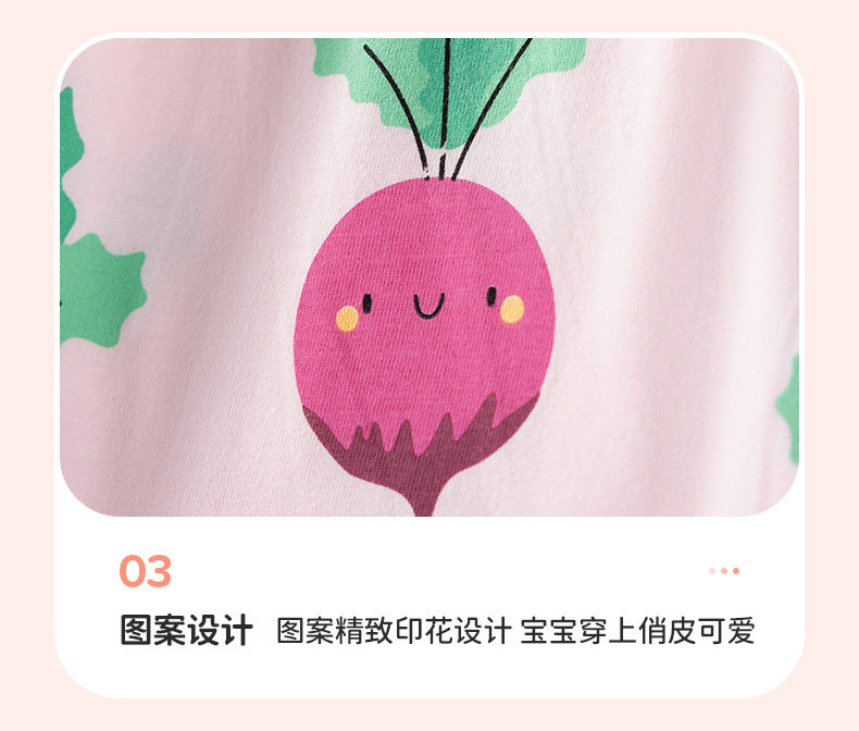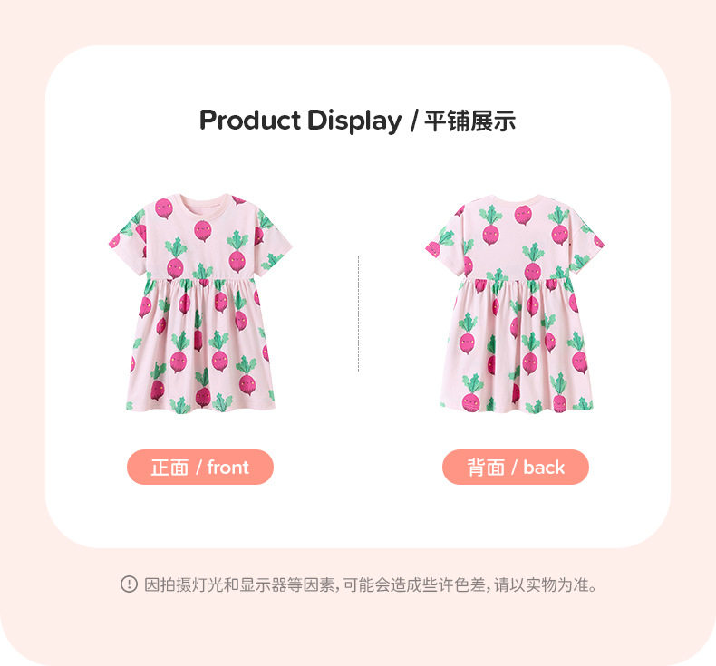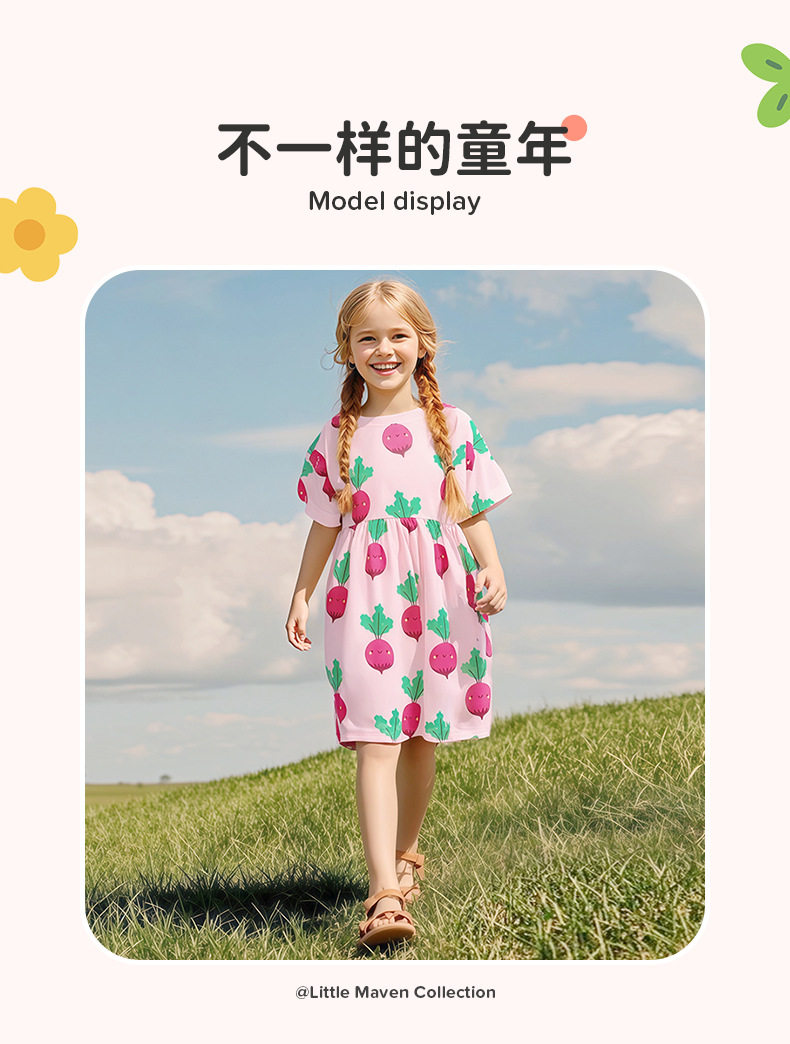 Girls' Summer Cotton Short-Sleeve Dress, Cute Radish Print Kids' Dress