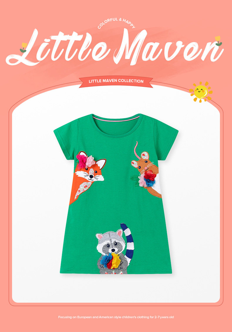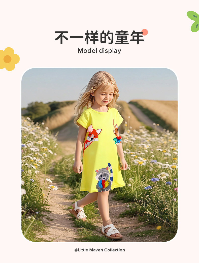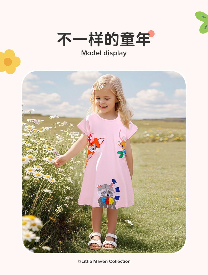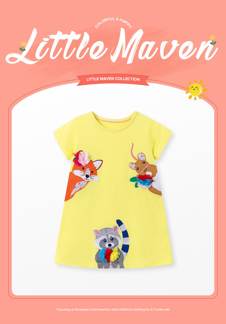 Girls' Summer Cartoon Short-Sleeve Dress Wholesale from Source Factory, Applique Kids' Dress