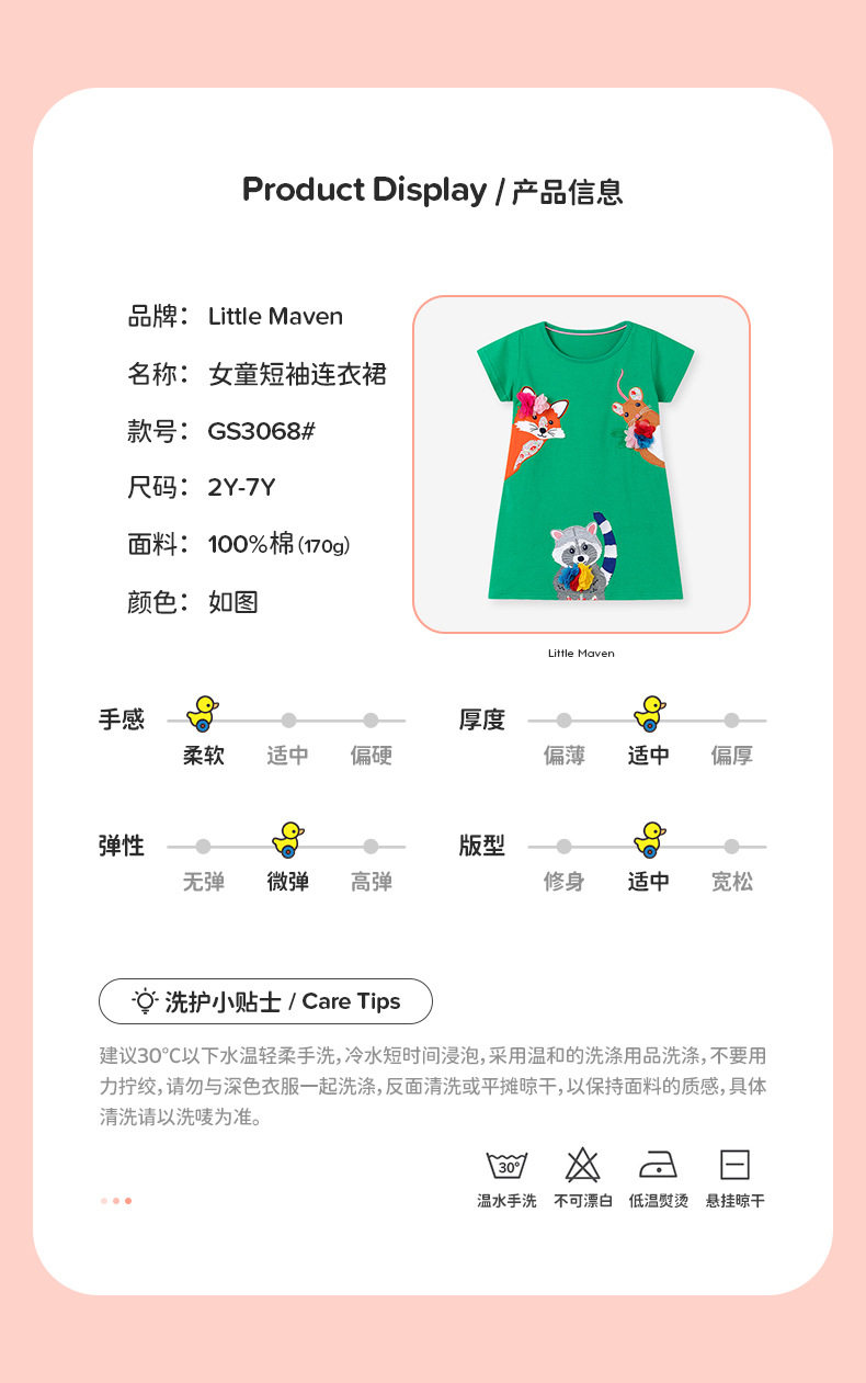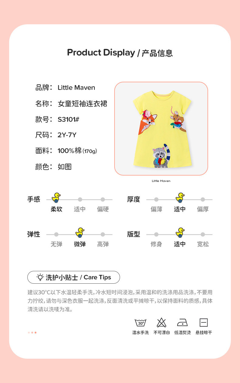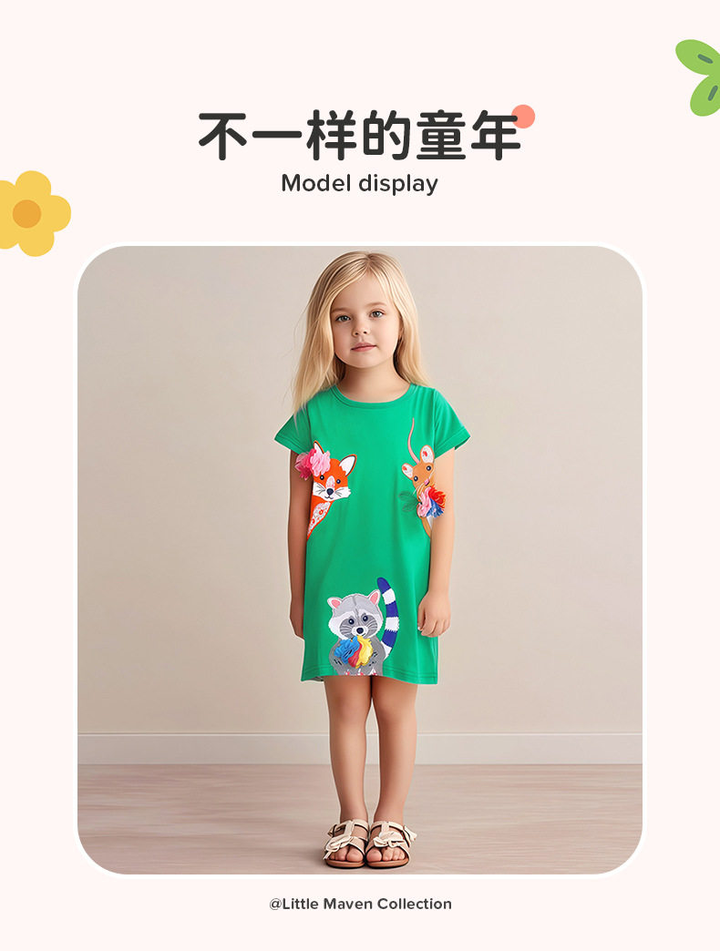 Girls' Summer Cartoon Short-Sleeve Dress Wholesale from Source Factory, Applique Kids' Dress