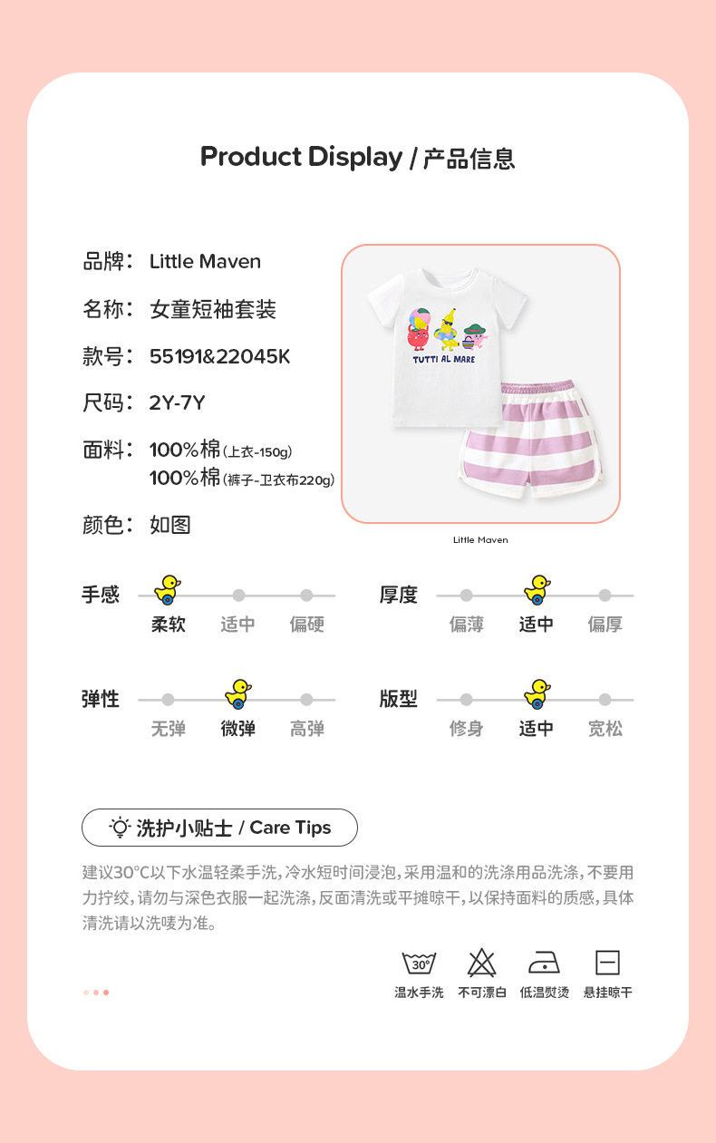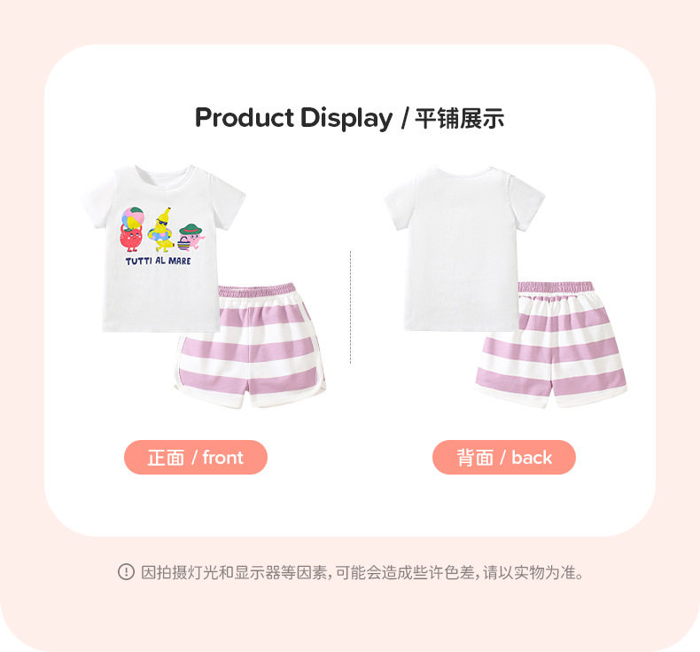 Style Girls' Set, Summer Cartoon Striped Kids' Outfit, Cute Baby Wear