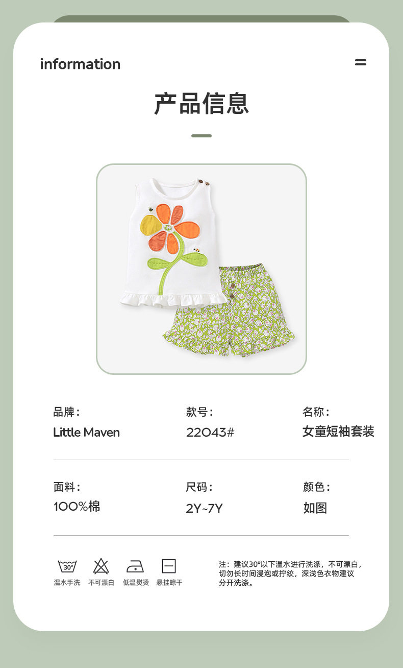 Girls' Cute Floral Two-Piece Set, Summer Casual Kids' Wear
