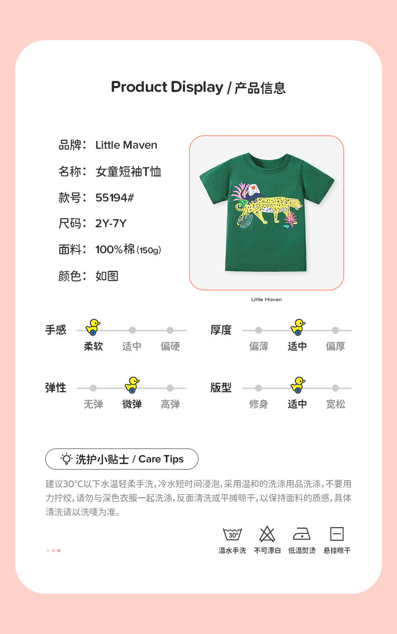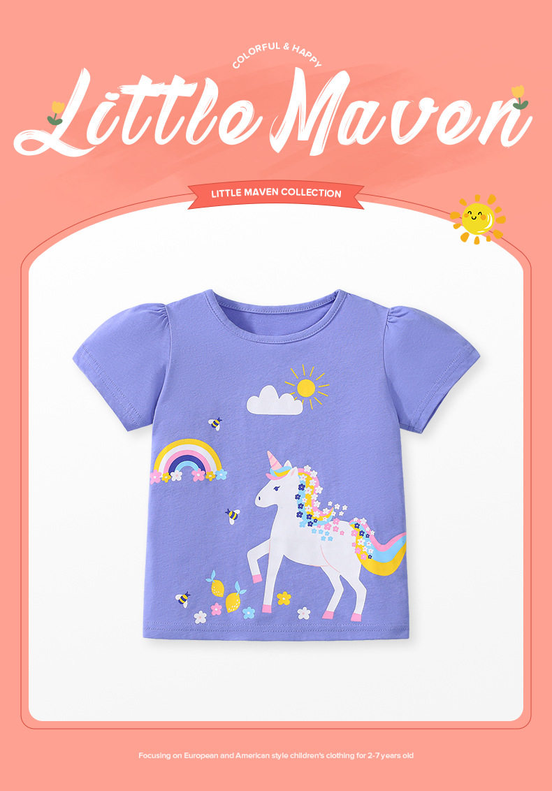 Girls' Summer Short-Sleeve T-Shirt Wholesale from Factory, Style Baby Top, Cartoon Cute Kids' Tee