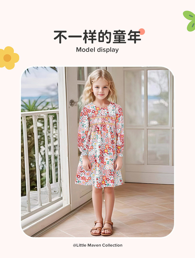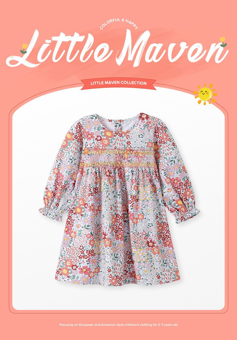 Girls' Cute Autumn Dress, Long-Sleeve Cotton Kids' Dress