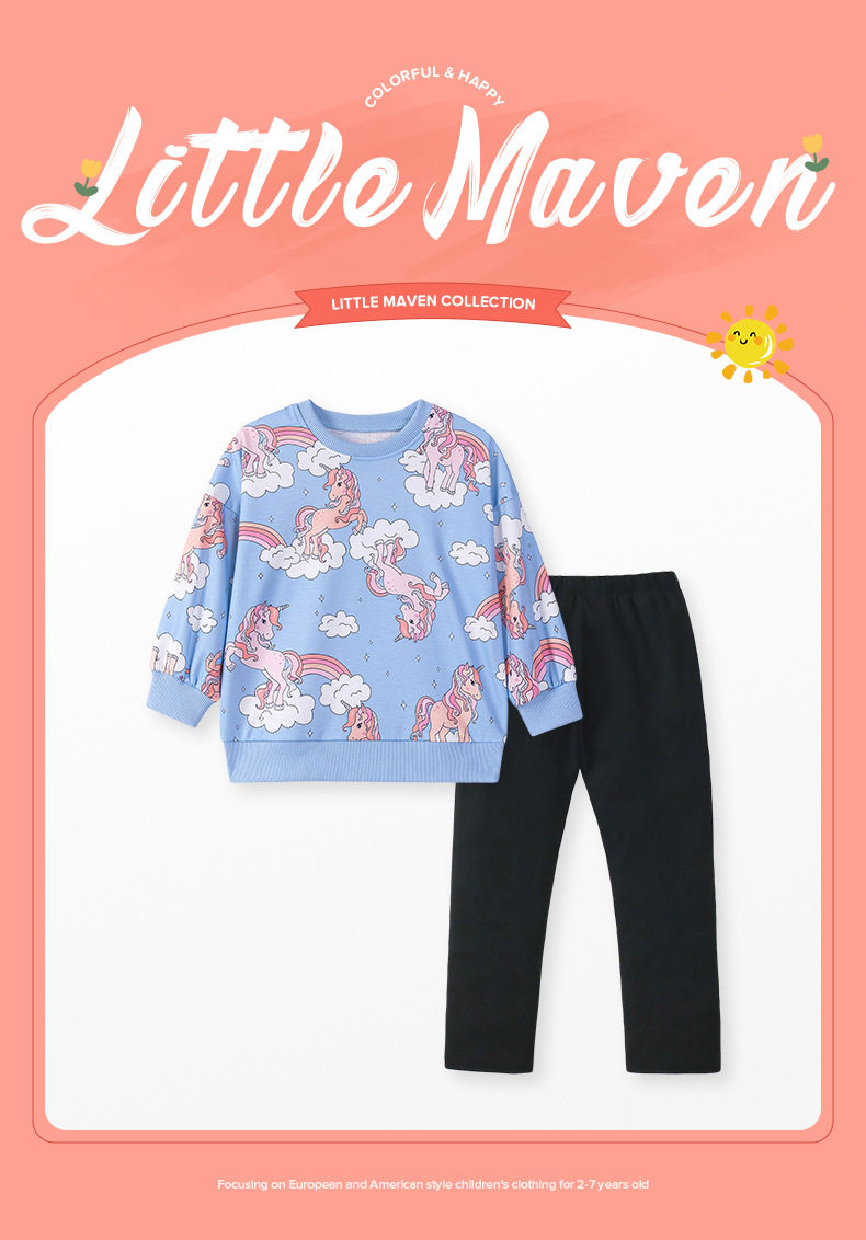 Girls' Autumn Cartoon Set, Cute Baby Girl Two-Piece Outfit
