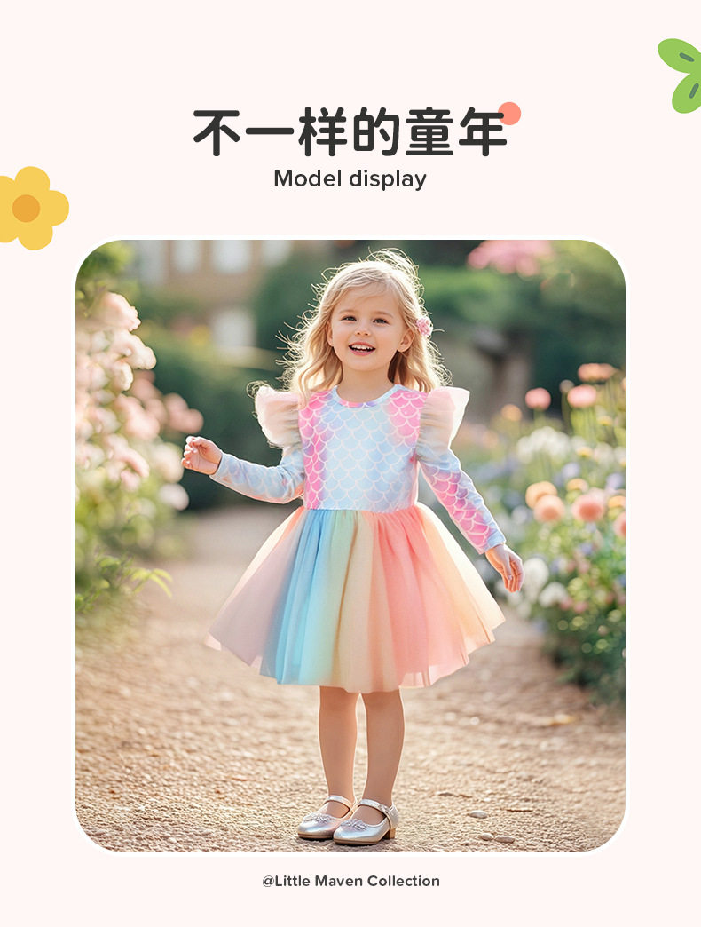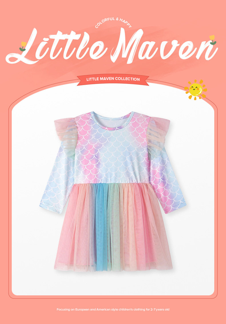 Style Fashion Girls' Dress, Autumn Mesh Kids' Dress, Cute Baby Dress