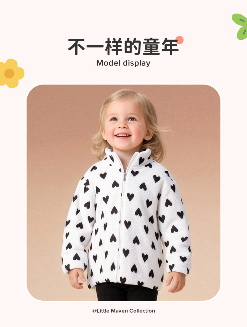 Girls' Autumn Long-Sleeve Hoodie, Style Cute Fleece-Lined Top