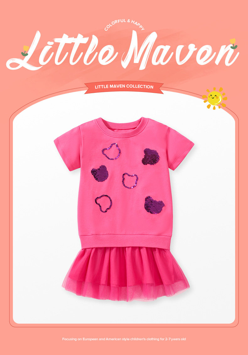 Girls' Summer Short-Sleeve Mesh Dress, Cute Kids' Dress