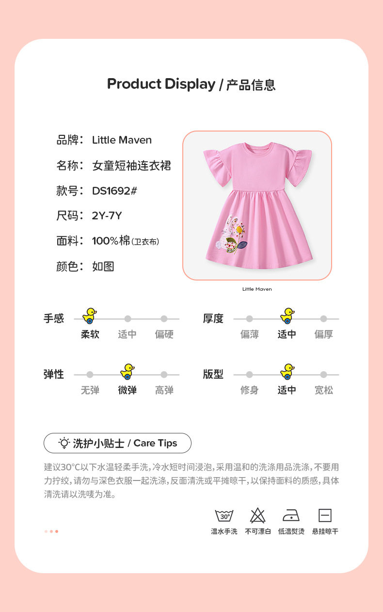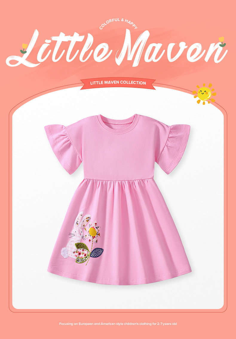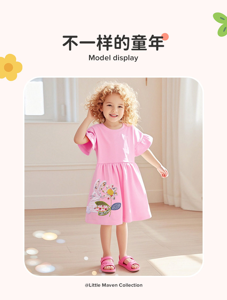 Kids' Summer Short-Sleeve Cartoon Dress, Cute Cotton Girls' Dress