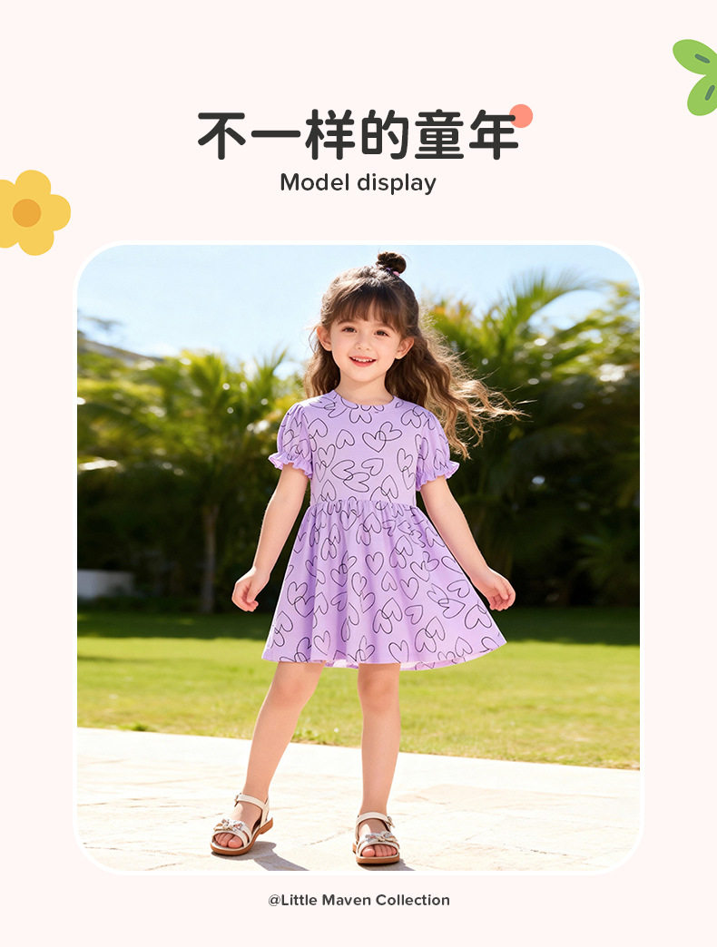 Dropshipping & distribusi gaun anak, gaun anak lengan pendek musim panas, gaun anak lucu gaya