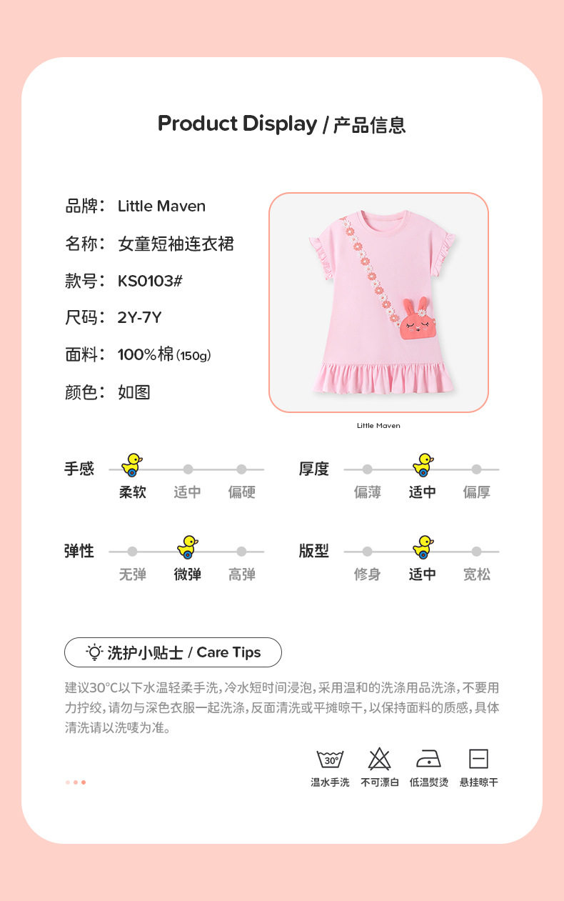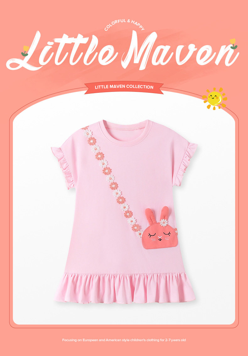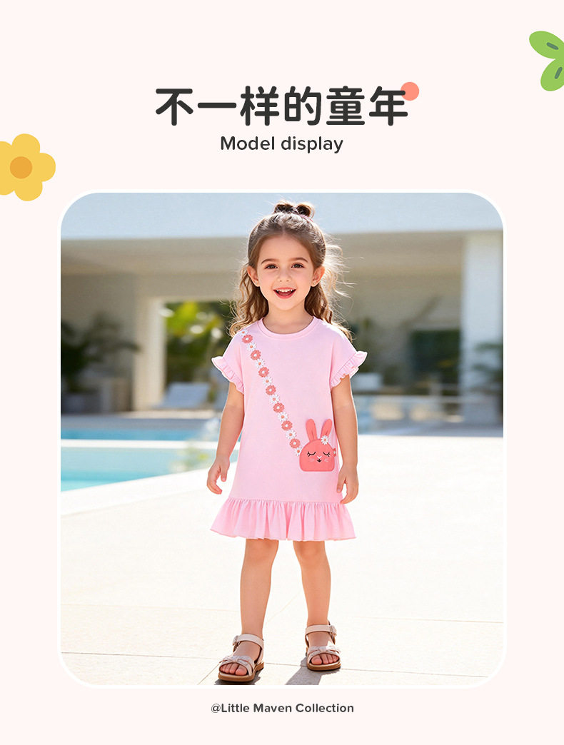 Girls' Dress, Summer Short-sleeve Kids' Dress, Cute Cartoon Baby Dress