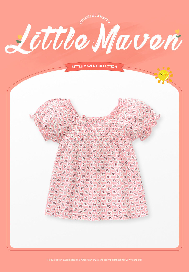 Girls' Summer Short-Sleeve T-Shirt Wholesale from Factory, Style Baby Top, Cartoon Cute Kids' Tee
