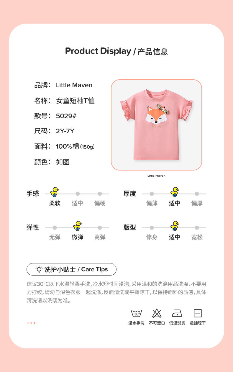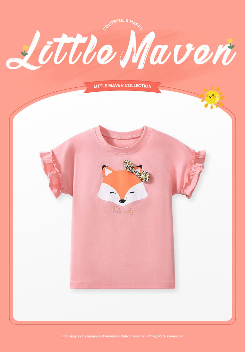 Girls' Summer Short-Sleeve T-Shirt Wholesale from Factory, Style Baby Top, Cartoon Cute Kids' Tee