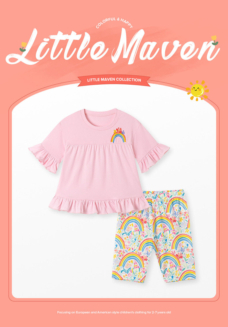 Summer Girls' Set, Cute Floral Baby Kids' Clothing, Short-sleeve Kids' 2-piece Outfit