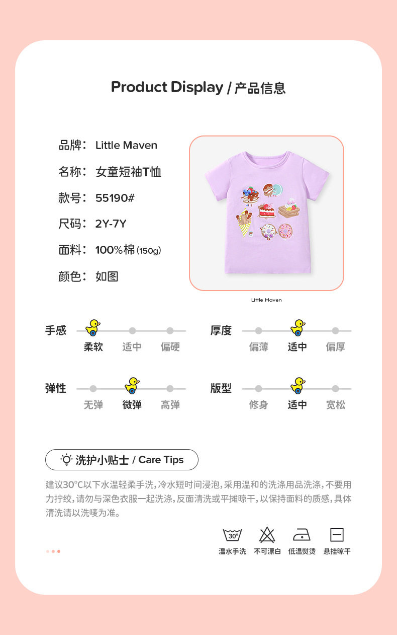 Girls' Summer Short-Sleeve T-Shirt Wholesale from Factory, Style Baby Top, Cartoon Cute Kids' Tee