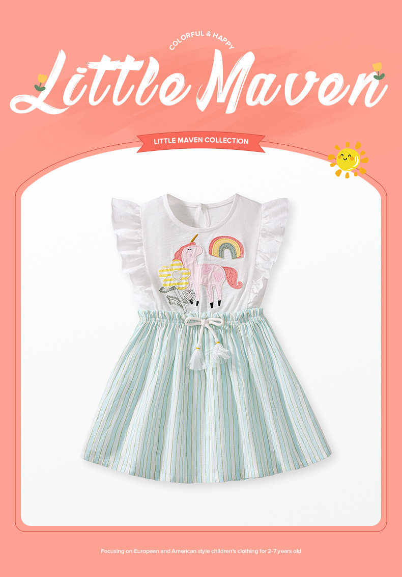 Girls' Short-sleeve Dress, Cute Baby Kids' Skirt, Cotton Kids' Dress